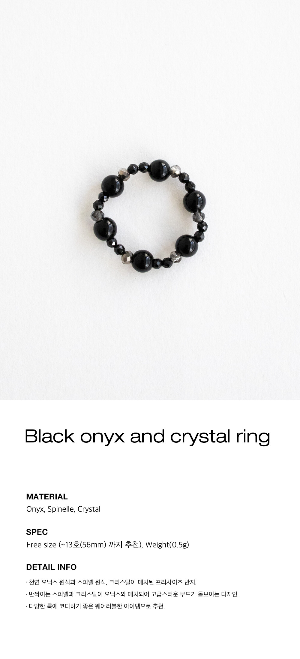 Black onyx and crystal ring