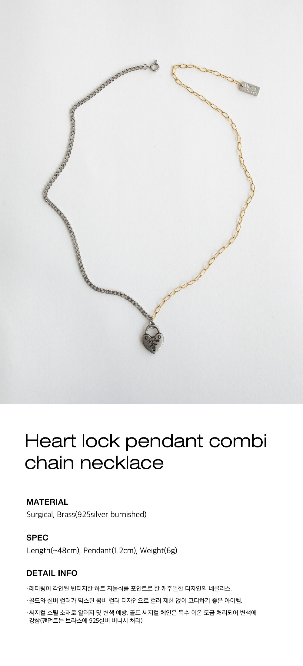 Heart lock pendant combi chain necklace