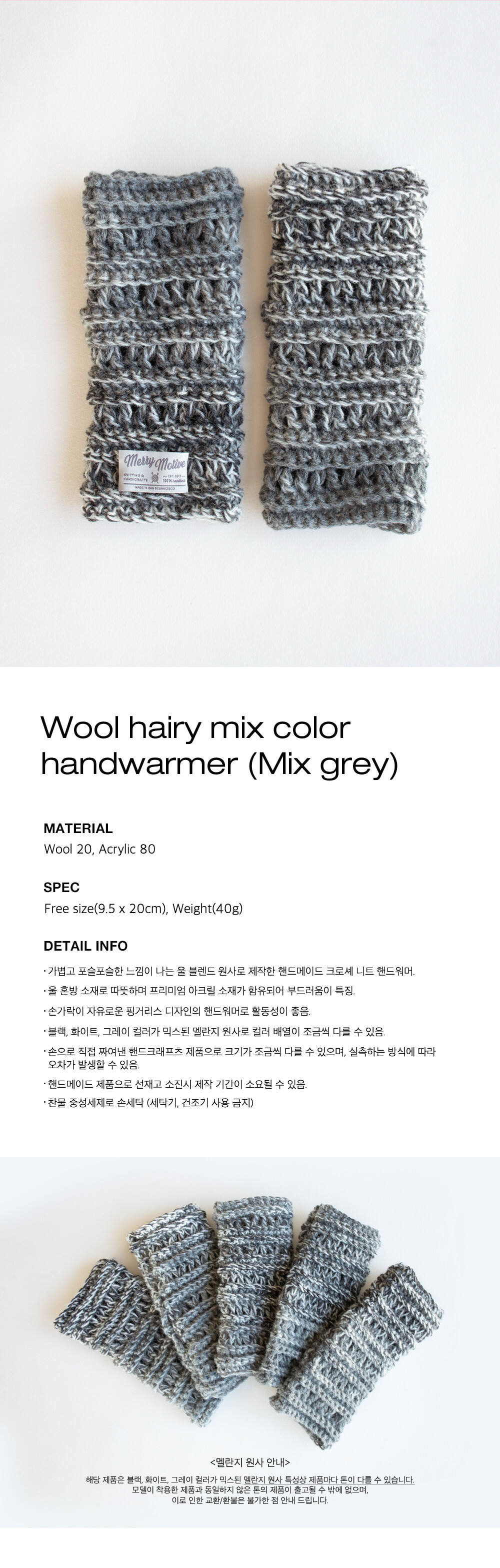 Wool hairy mix color handwarmer (Mix grey)