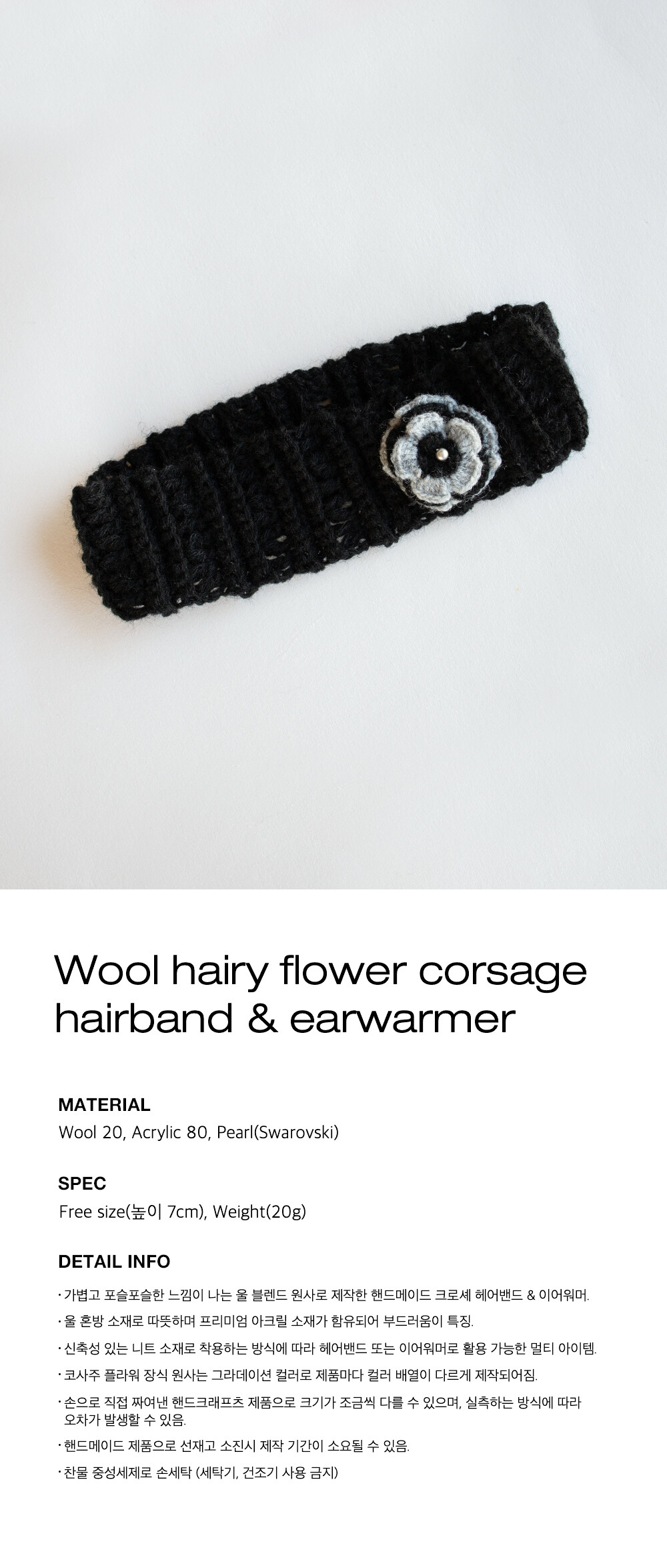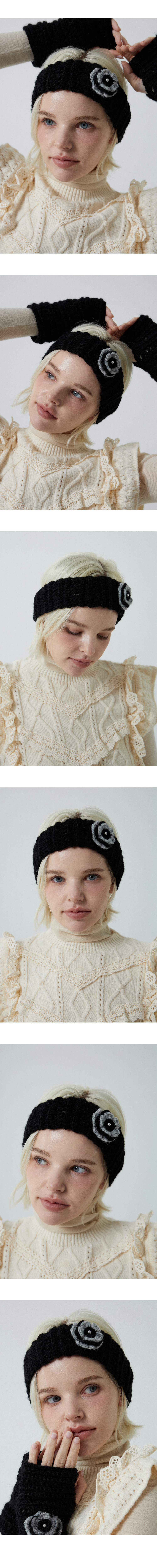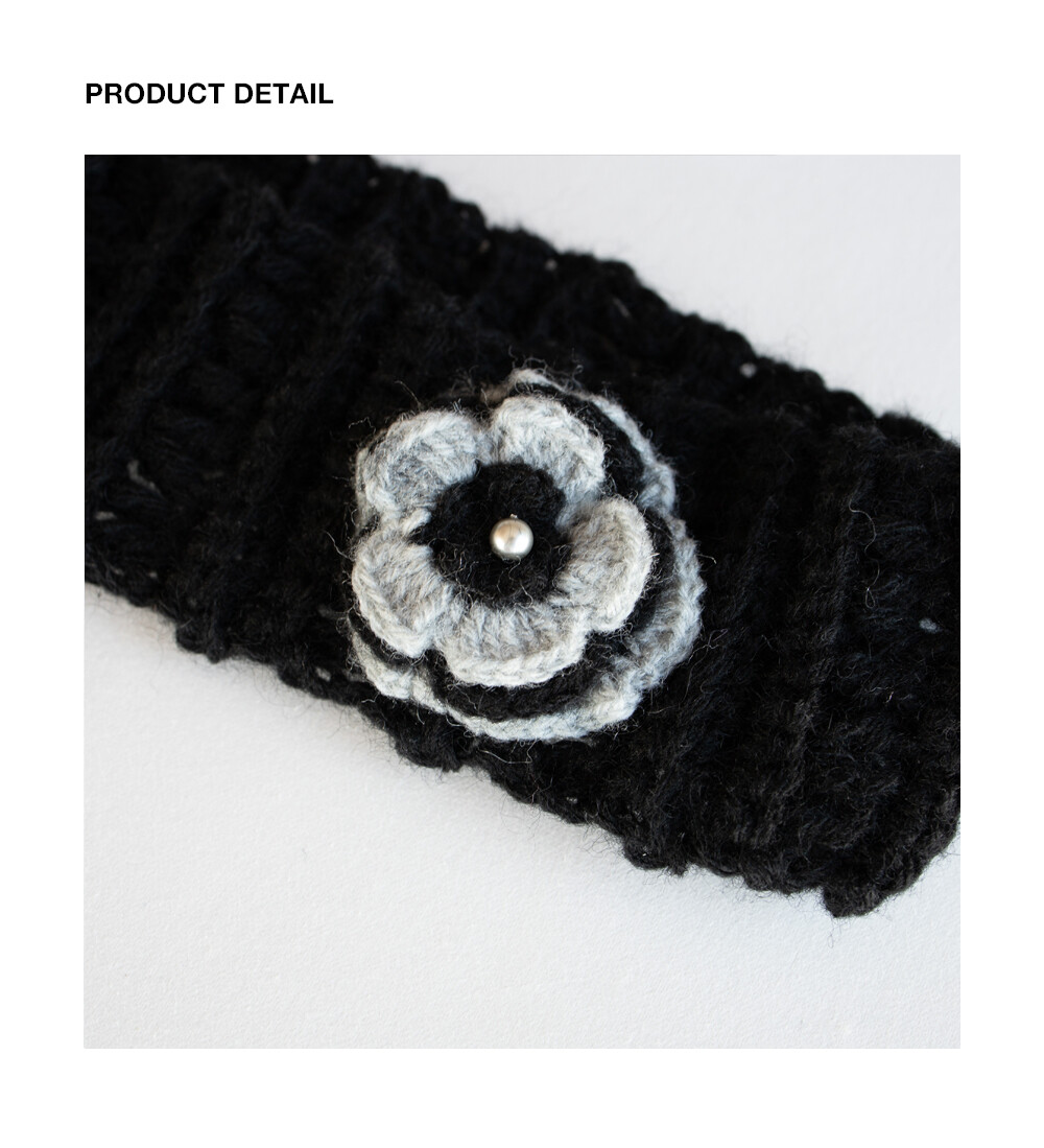 Wool hairy flower corsage hairband & earwarmer