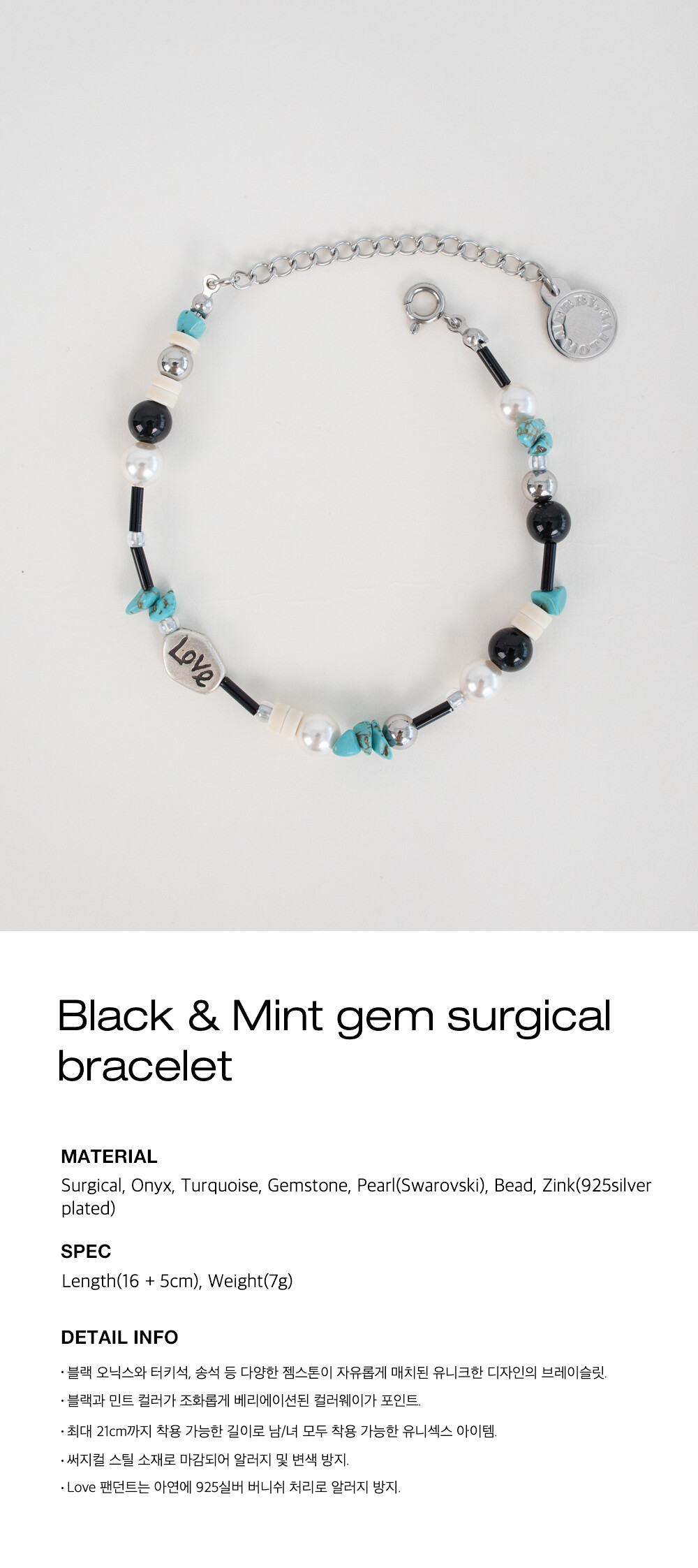 Black & Mint gem surgical bracelet