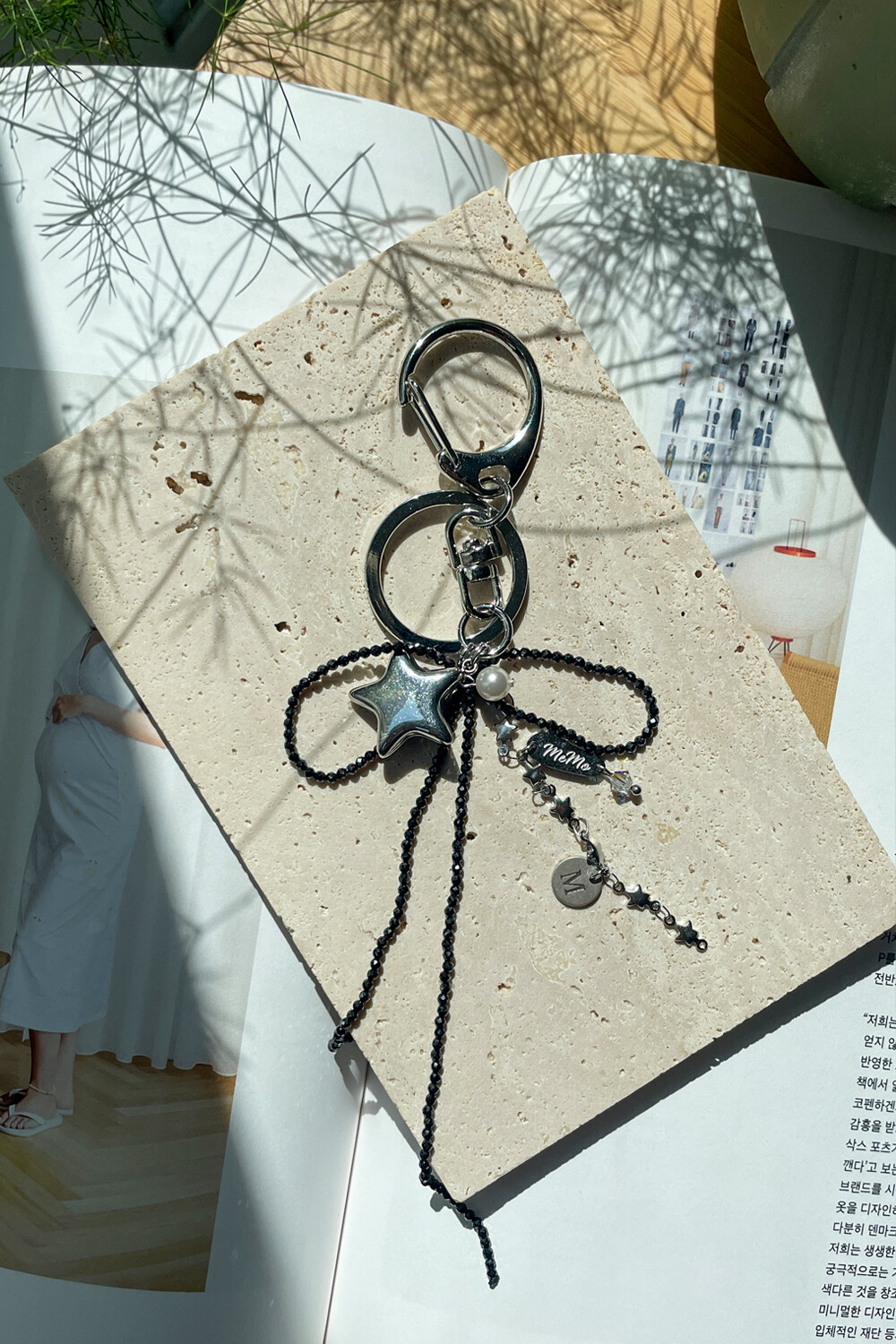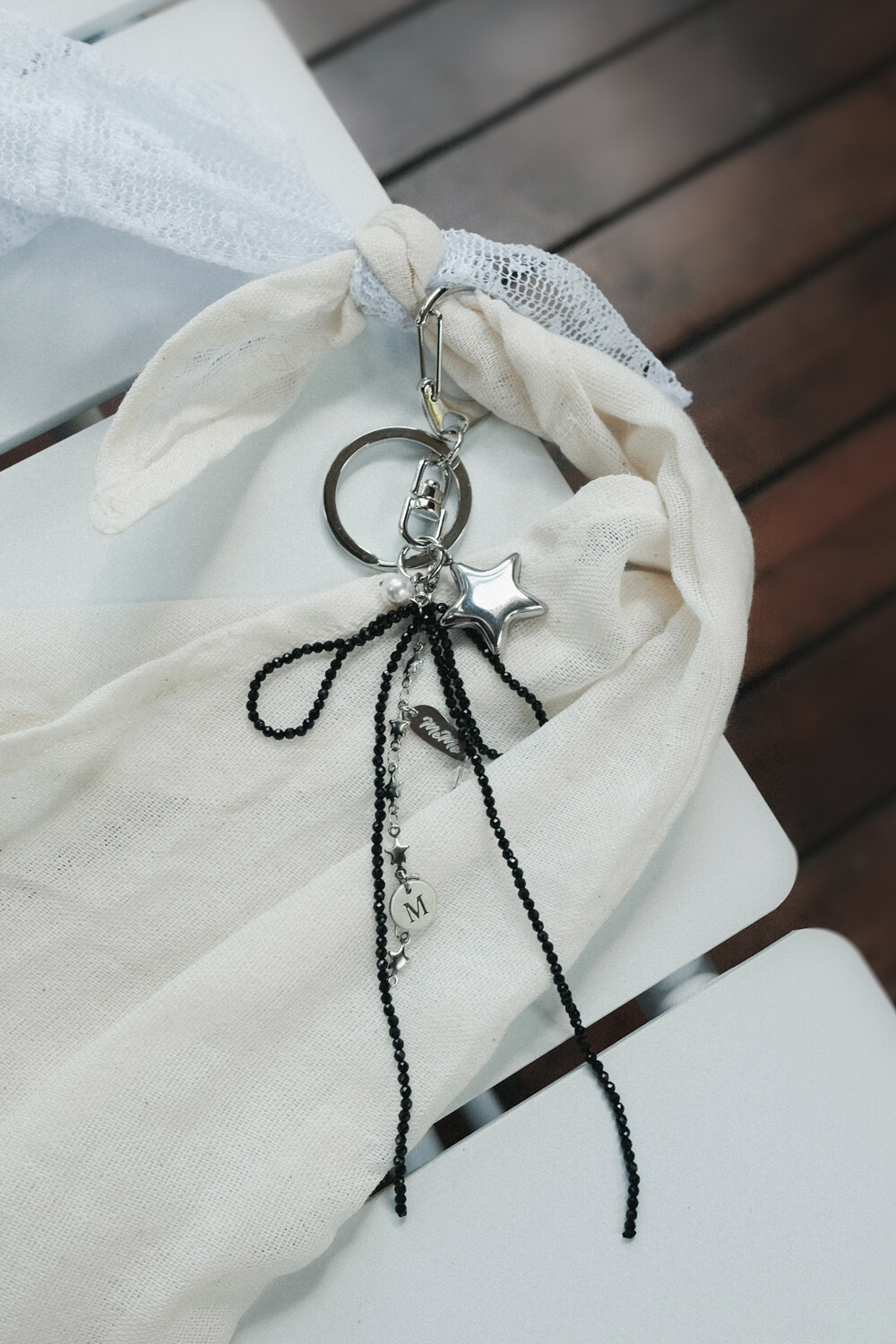 Black ribbon and star keyring