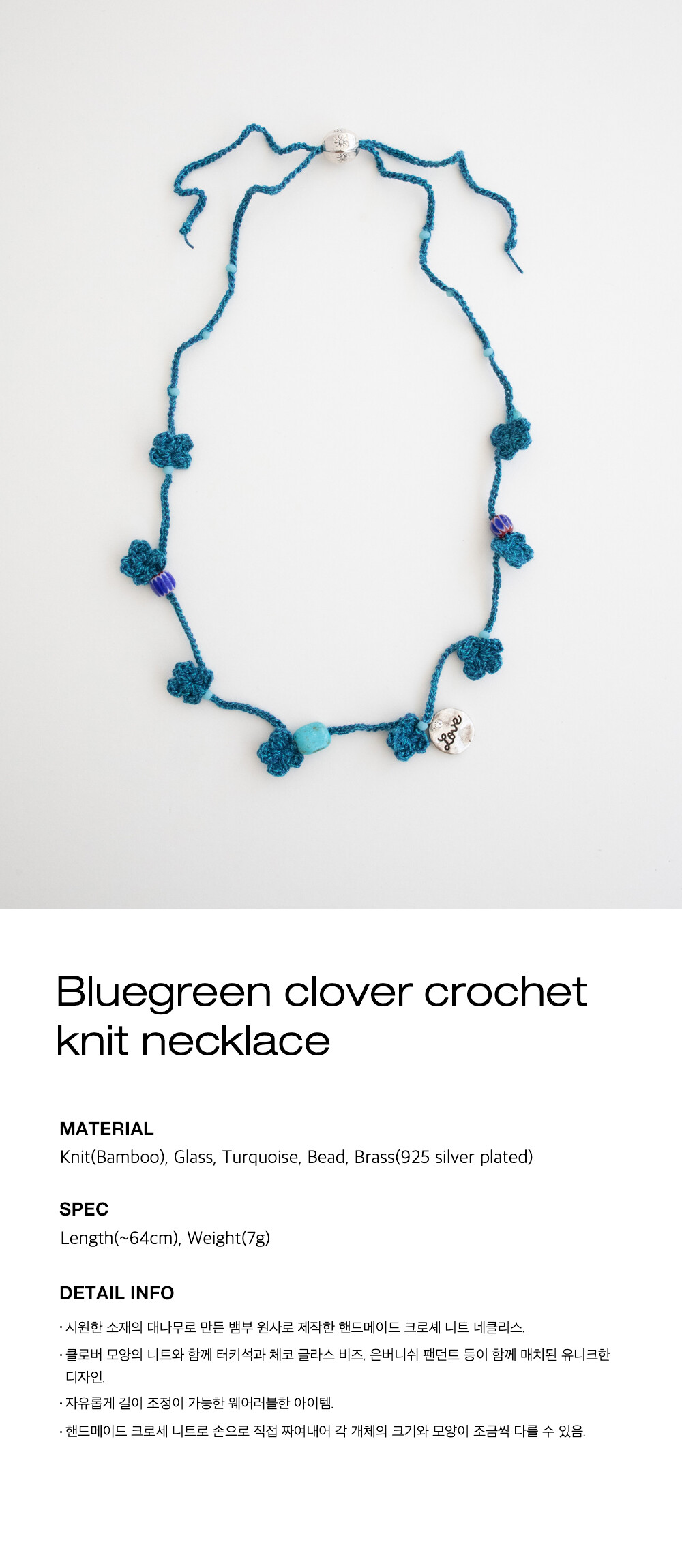 Bluegreen clover crochet knit necklace