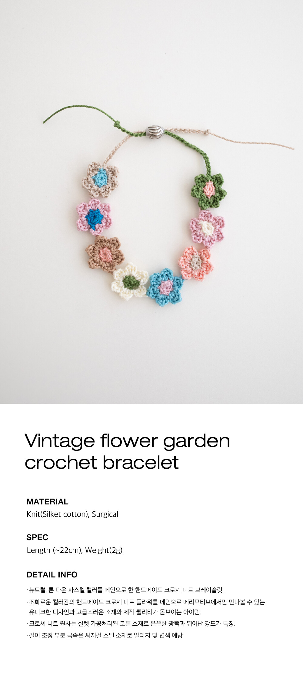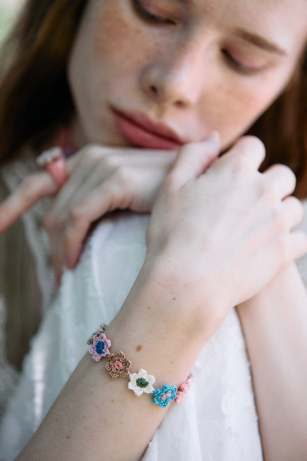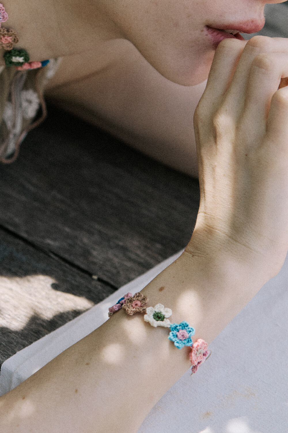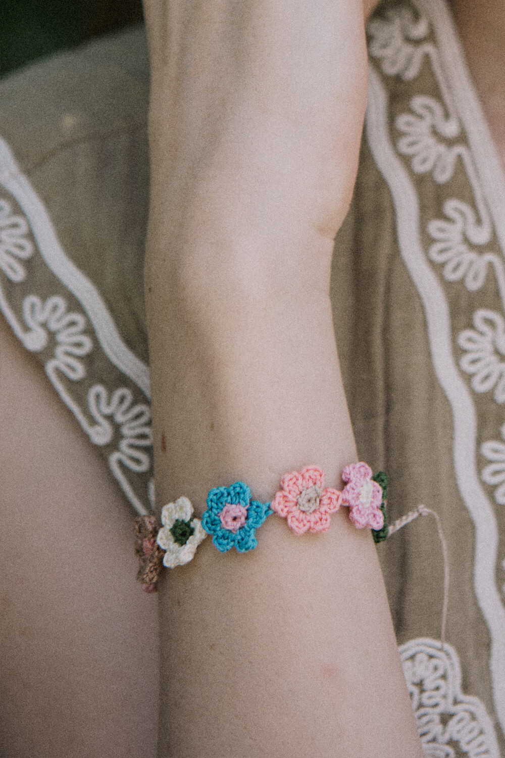 Vintage flower garden crochet bracelet