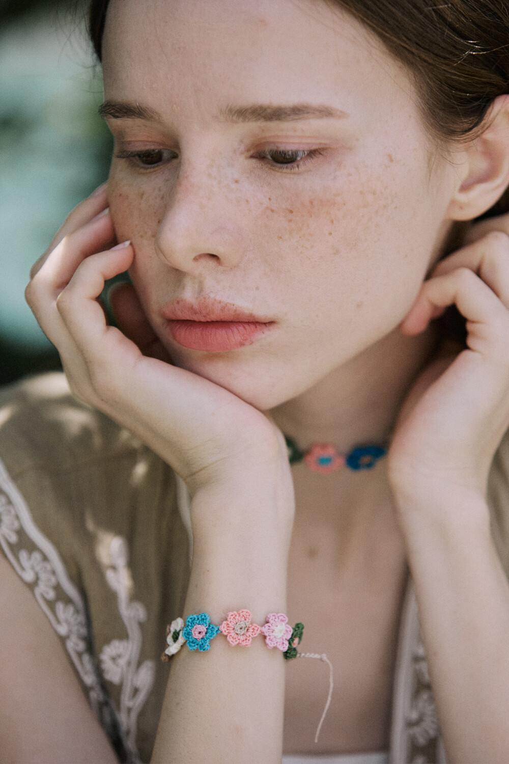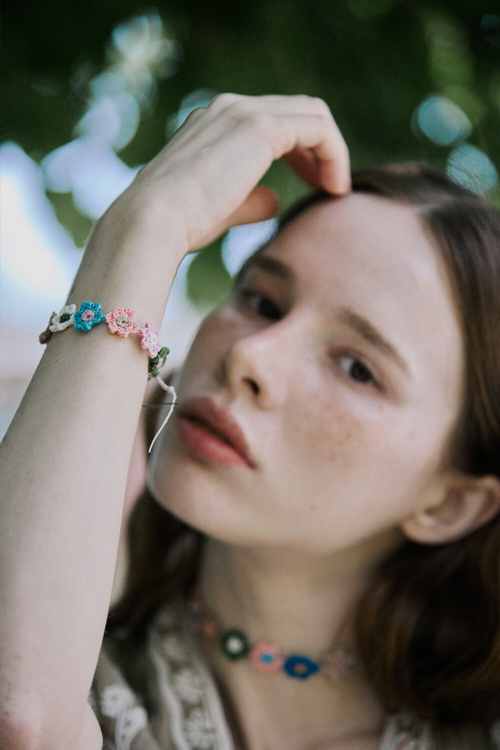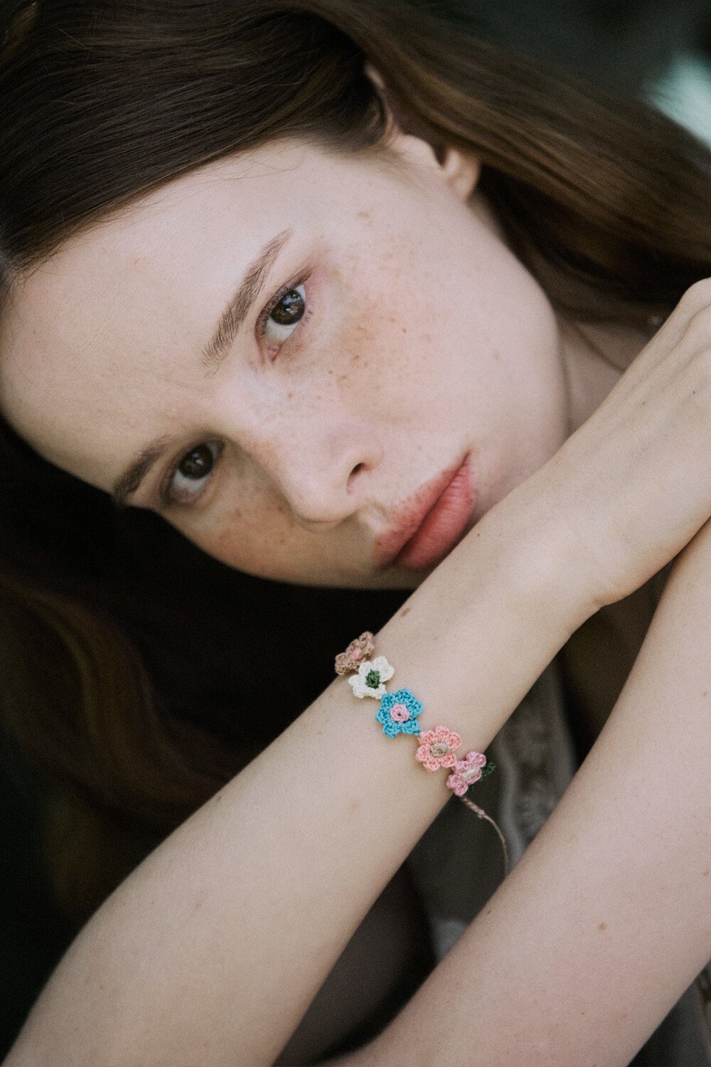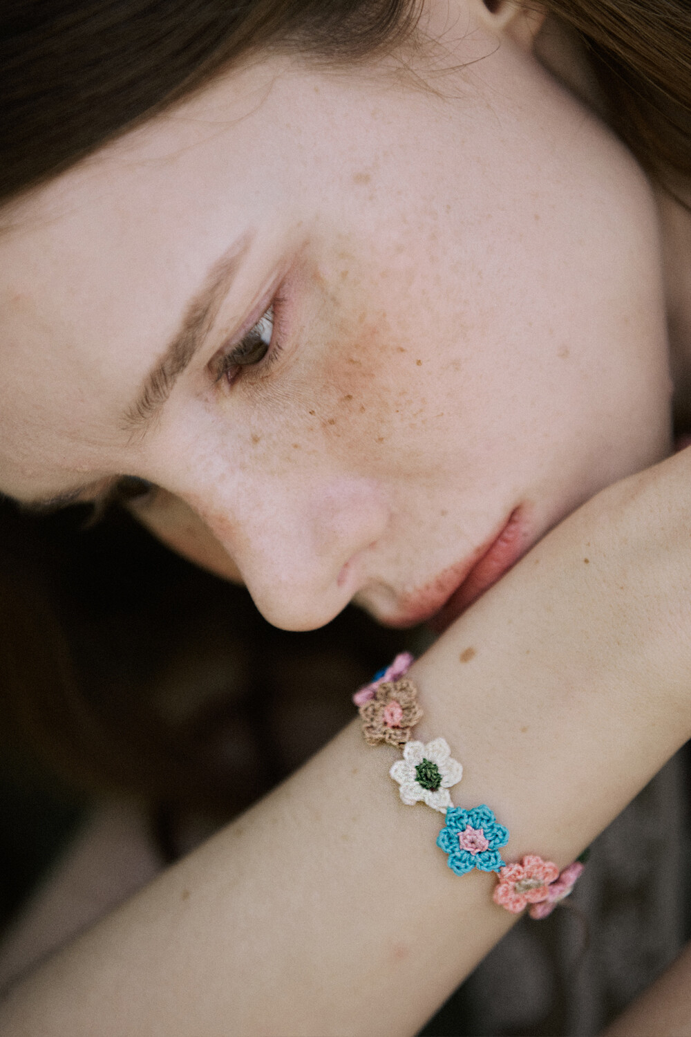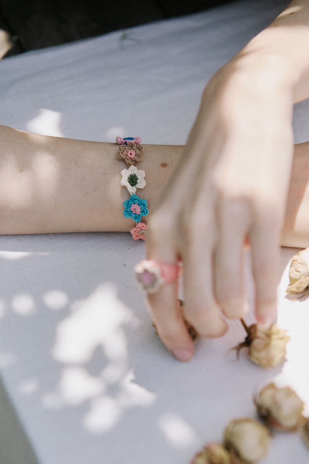 Vintage flower garden crochet bracelet