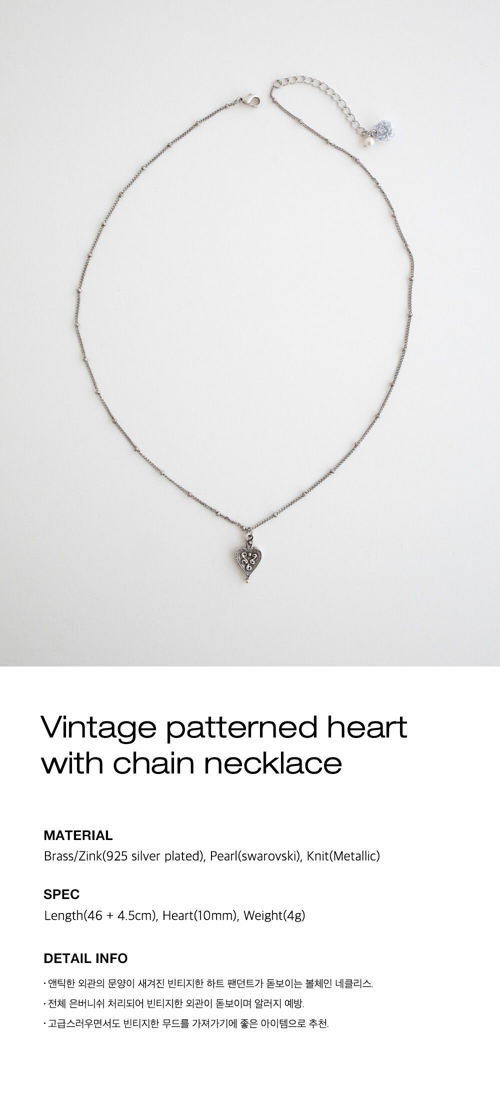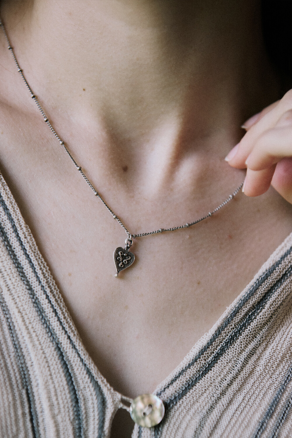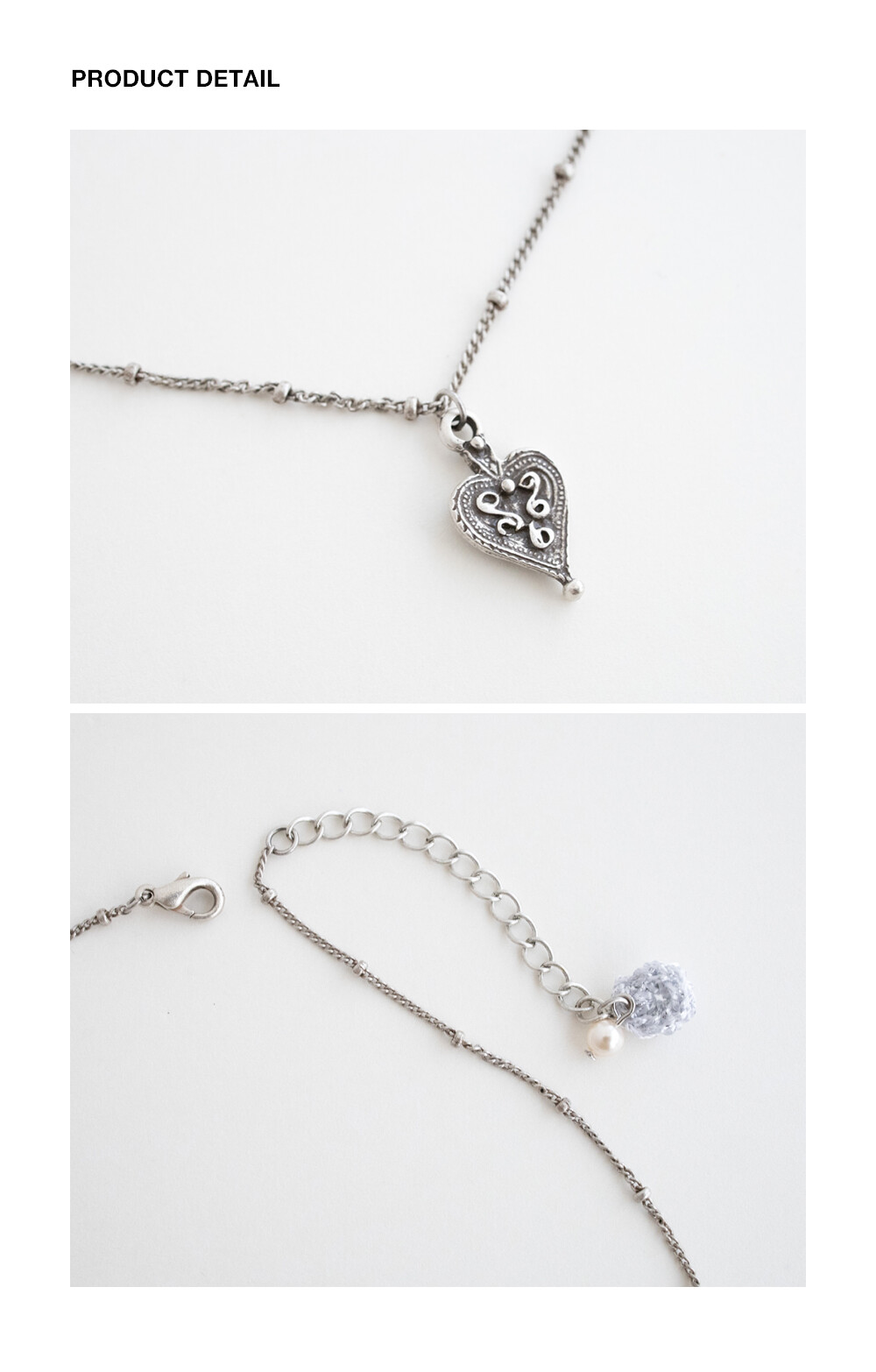 Vintage patterned heart with chain necklace