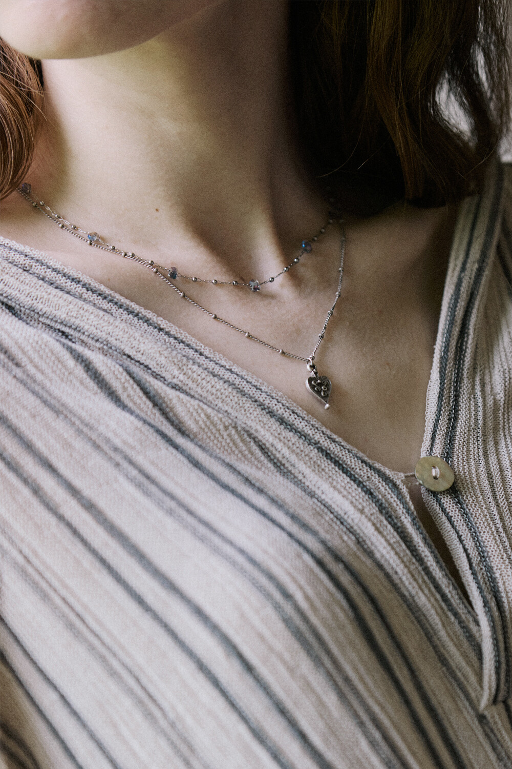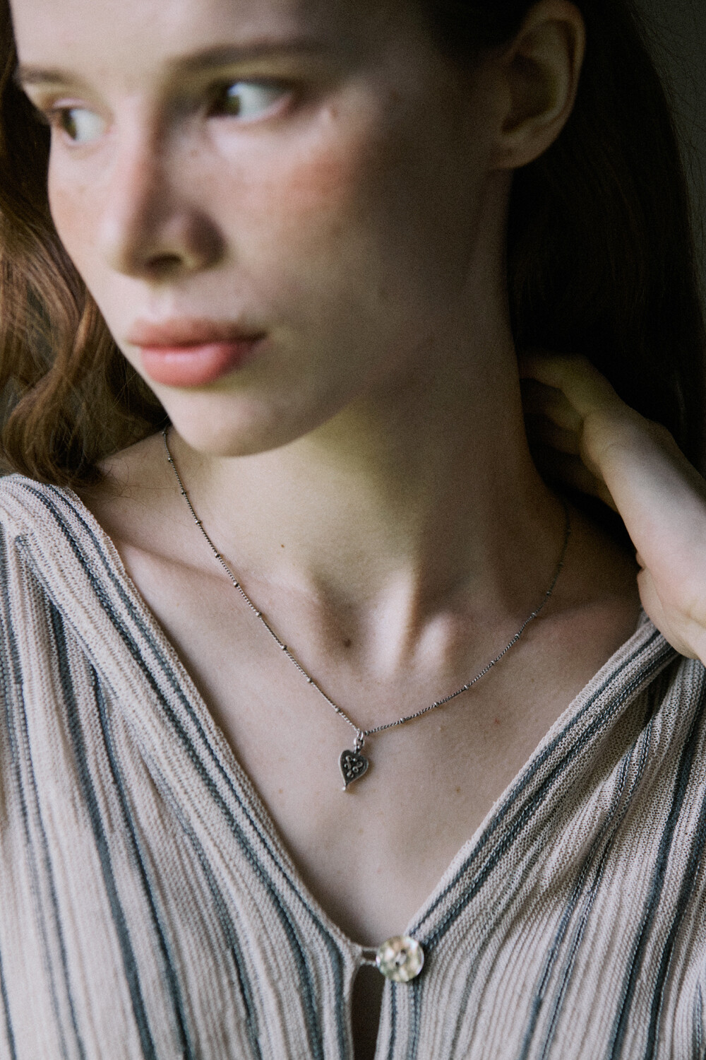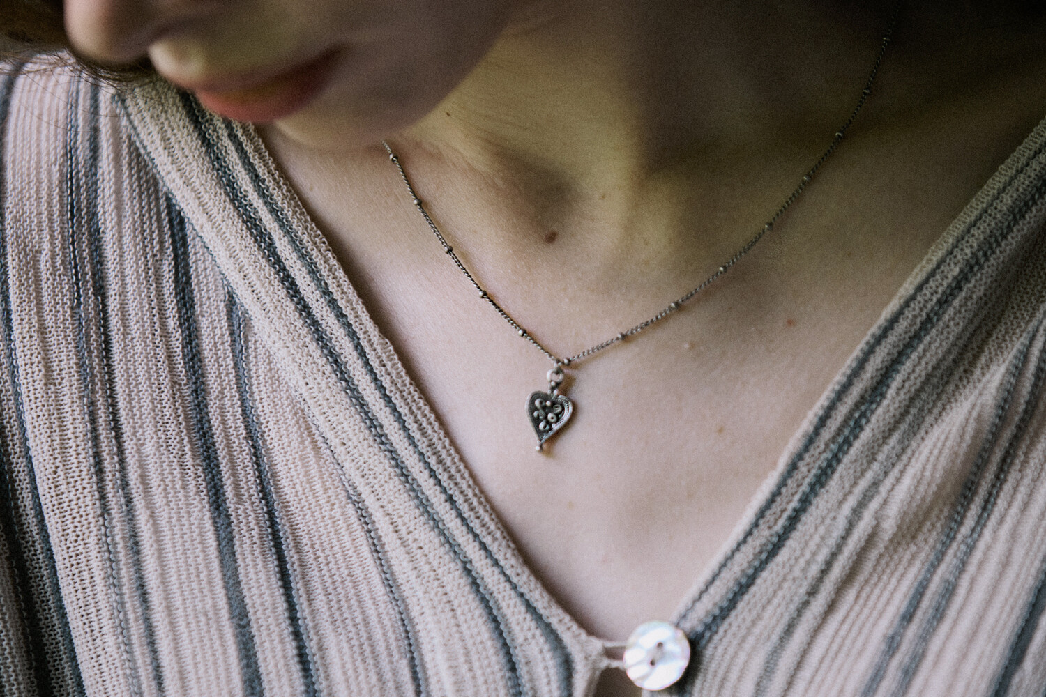 Vintage patterned heart with chain necklace