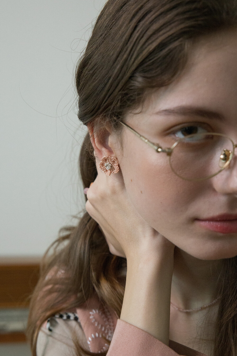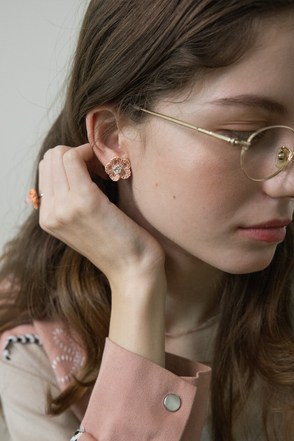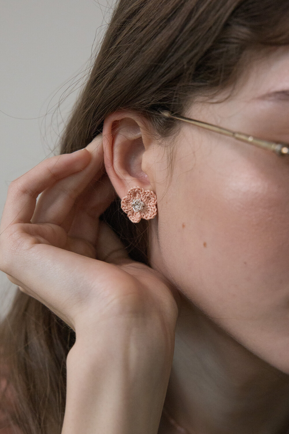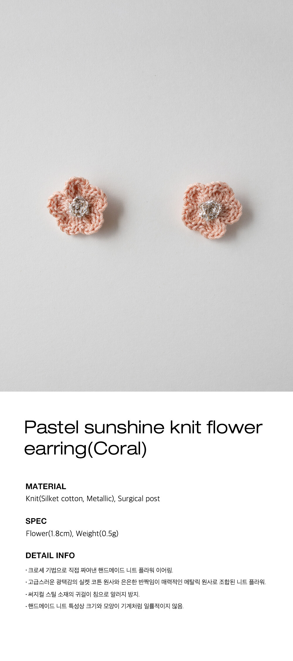 Pastel sunshine knit flower earring (Coral)