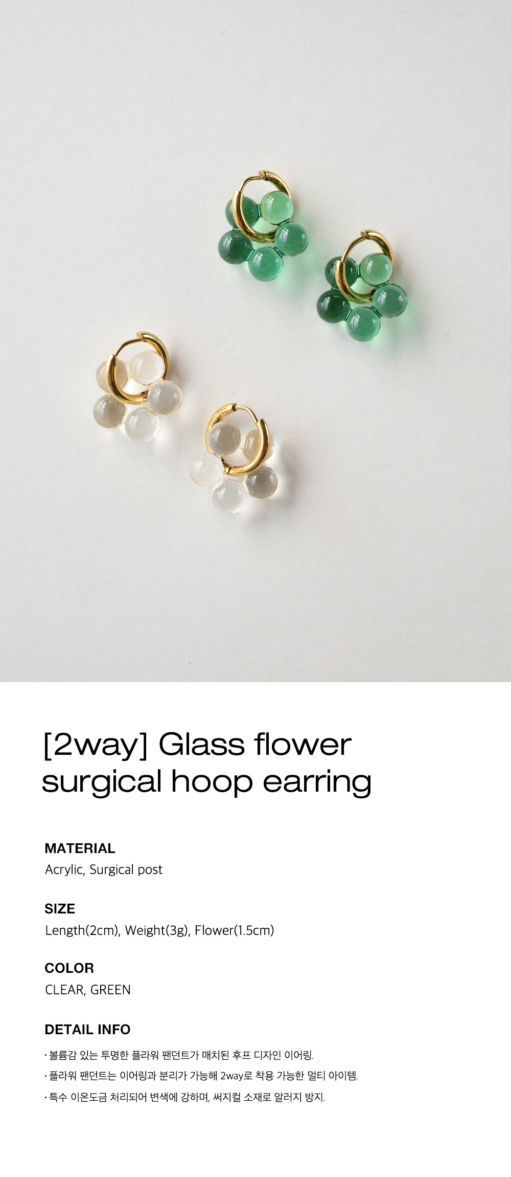 [2way] Glass flower surgical hoop earring (2color)