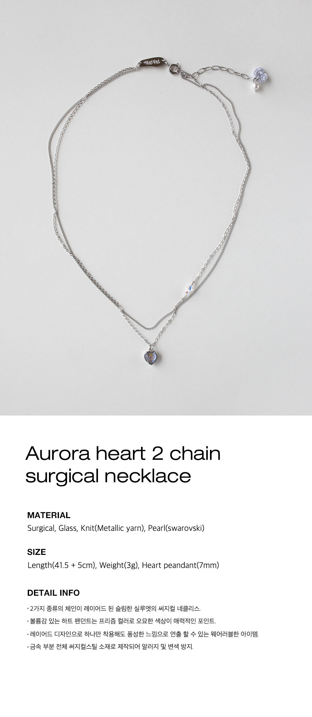 Aurora heart 2 chain surgical necklace