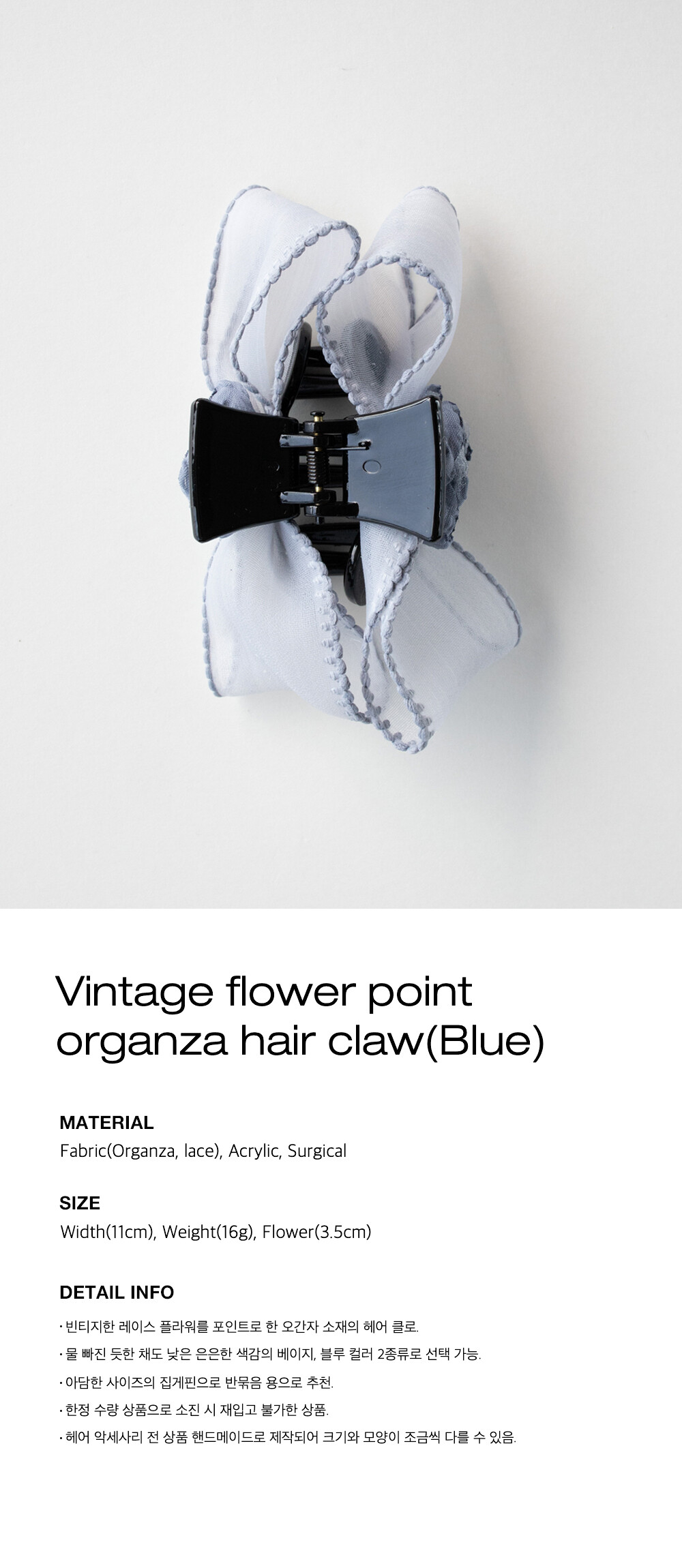 Vintage flower point organza hair claw (Blue)