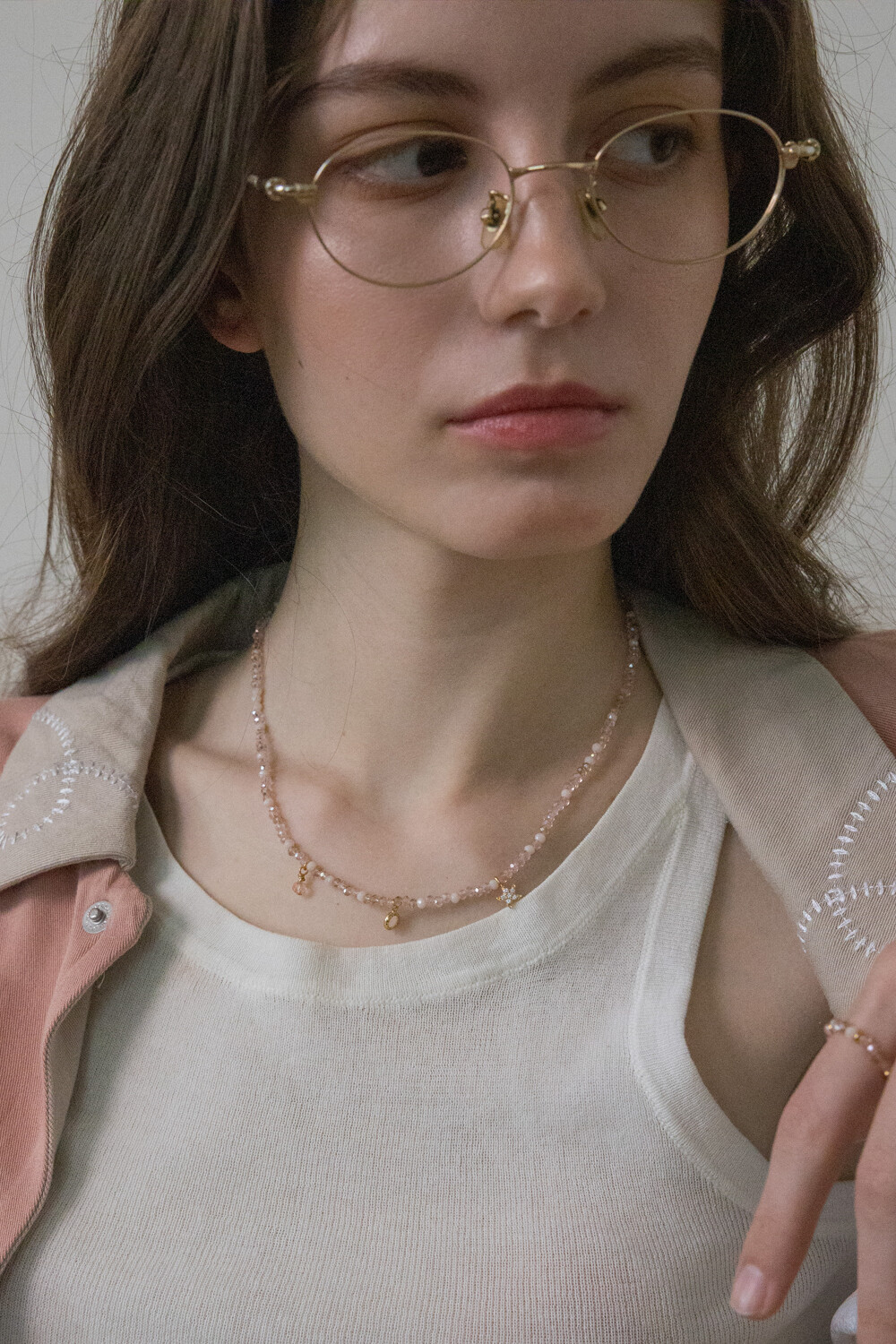 Shiny peach crystal necklace
