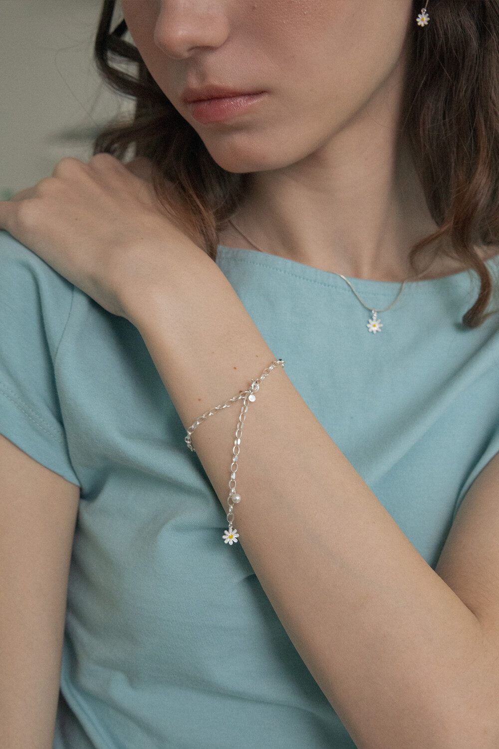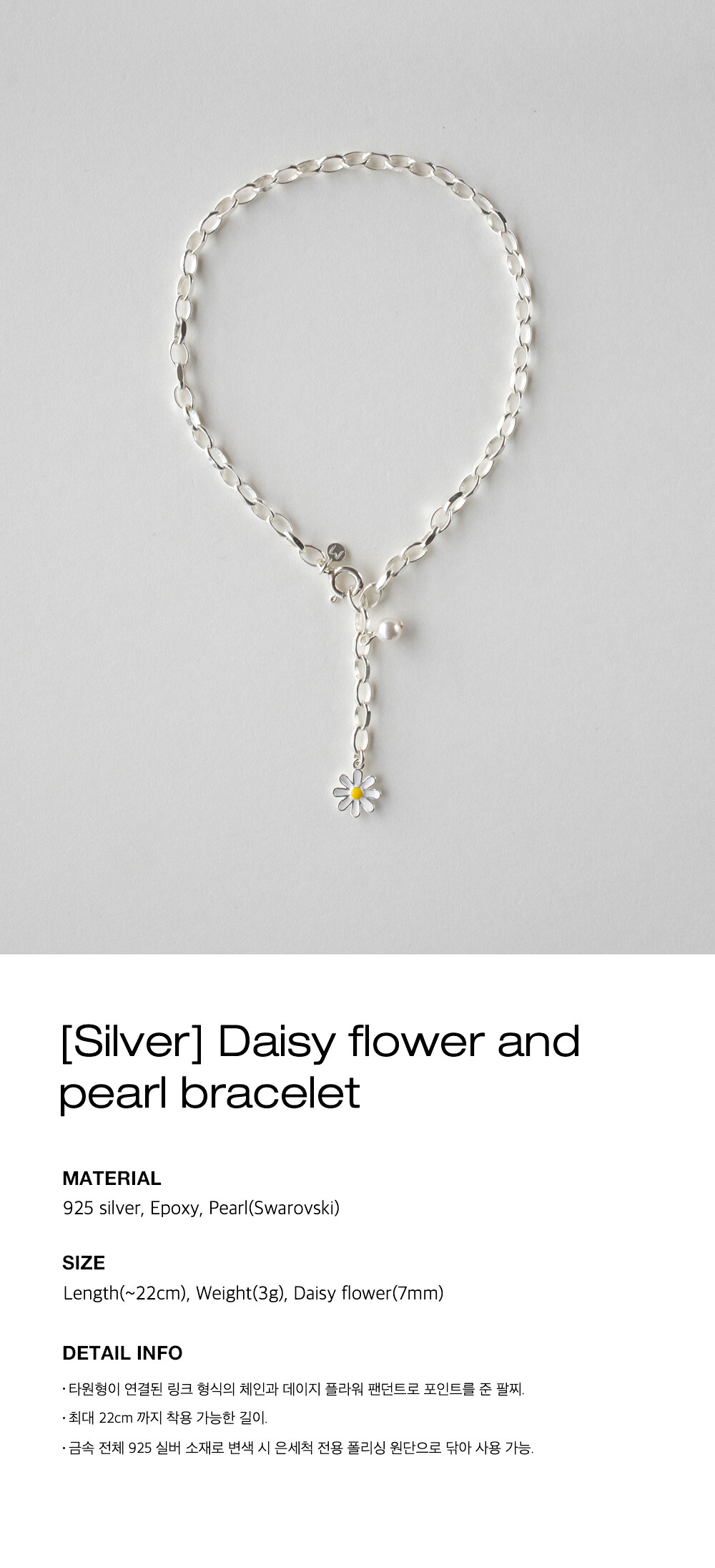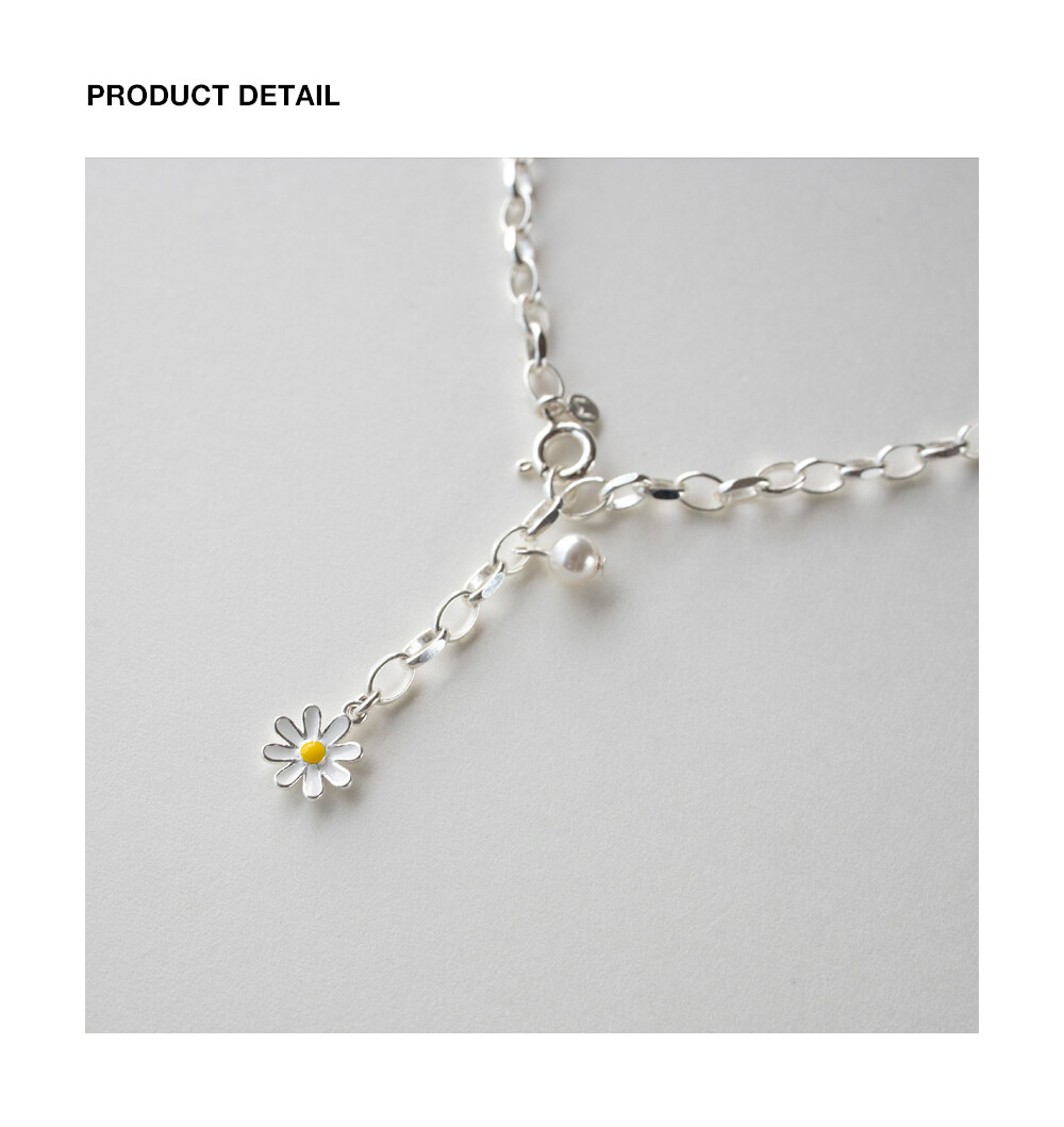 [Silver] Daisy flower and pearl bracelet