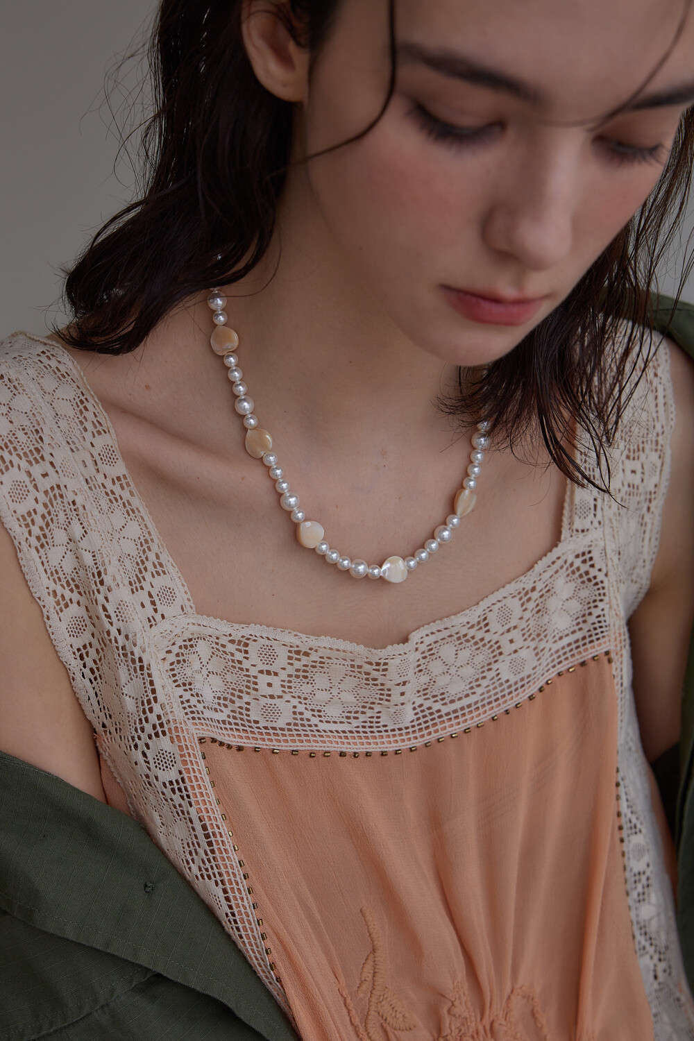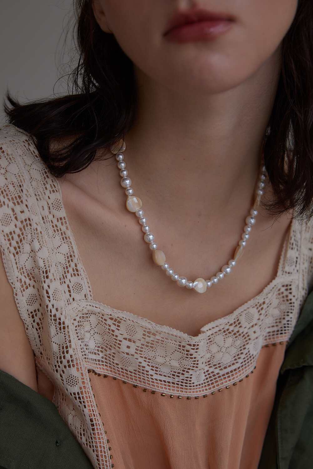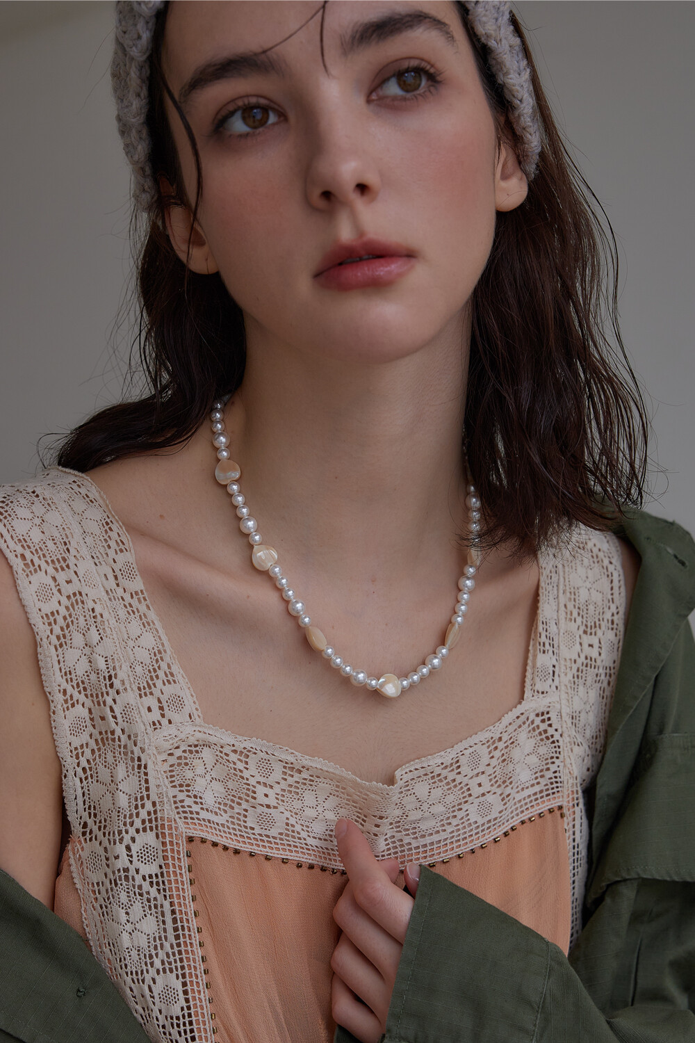 Heart clam with pearl necklace