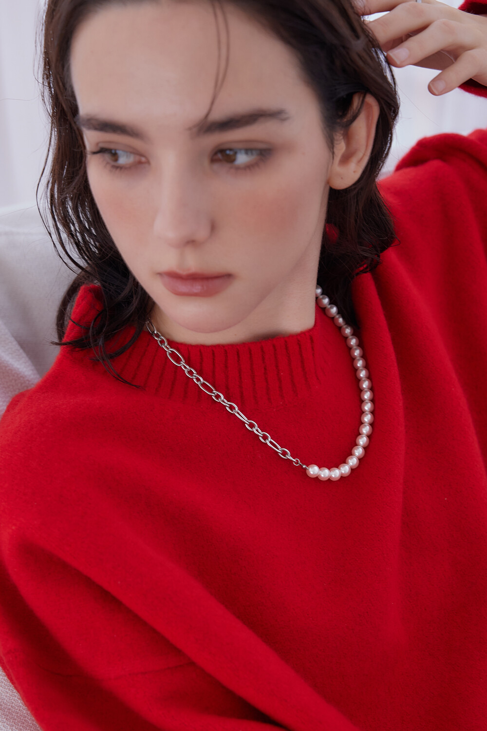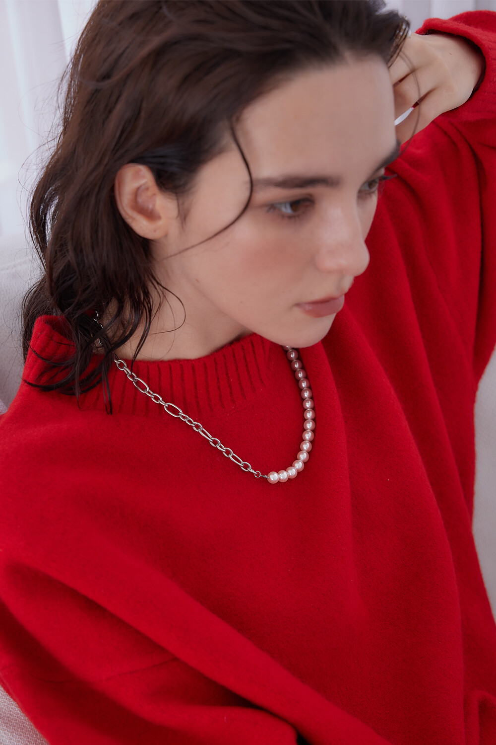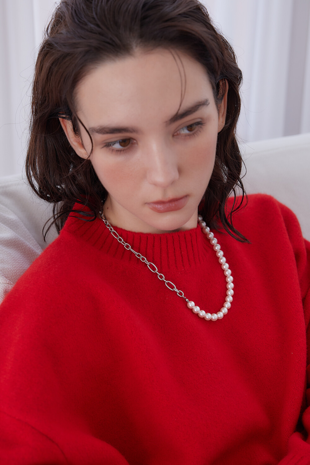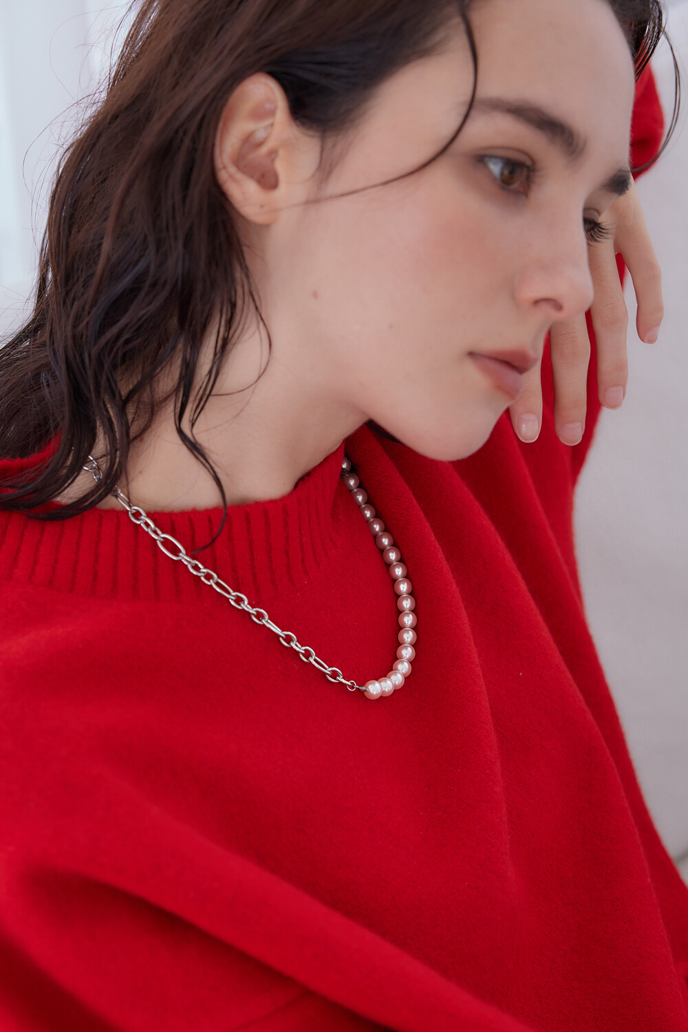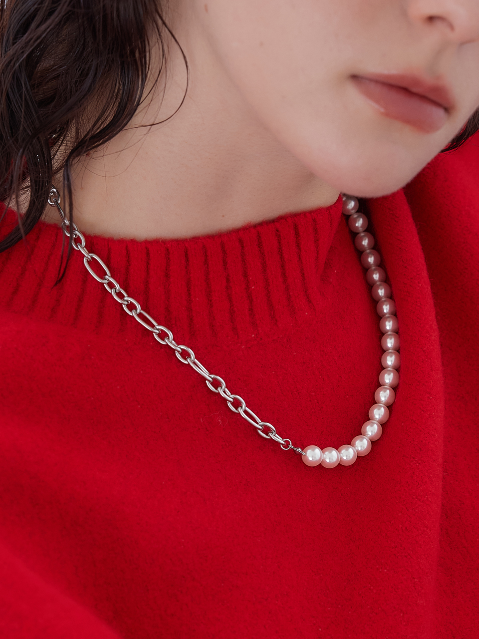 Pearl point linked chain necklace