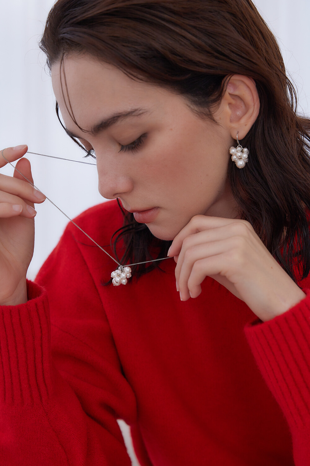 Pearl bouquet chain necklace