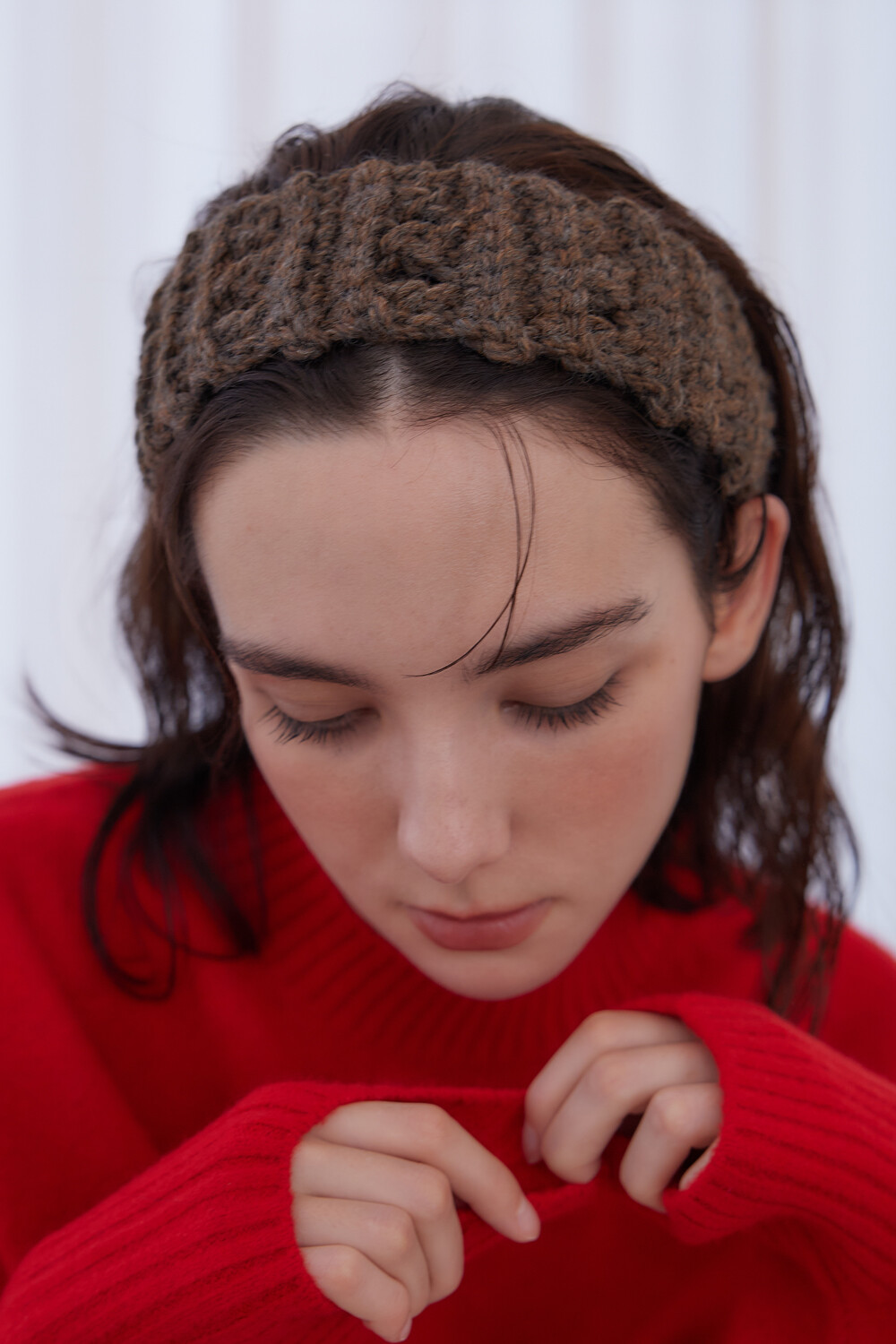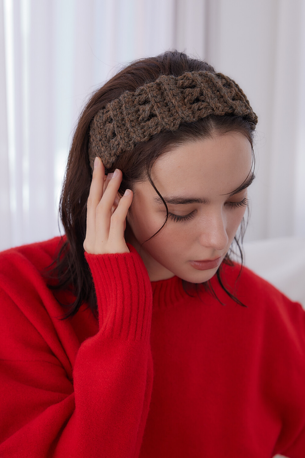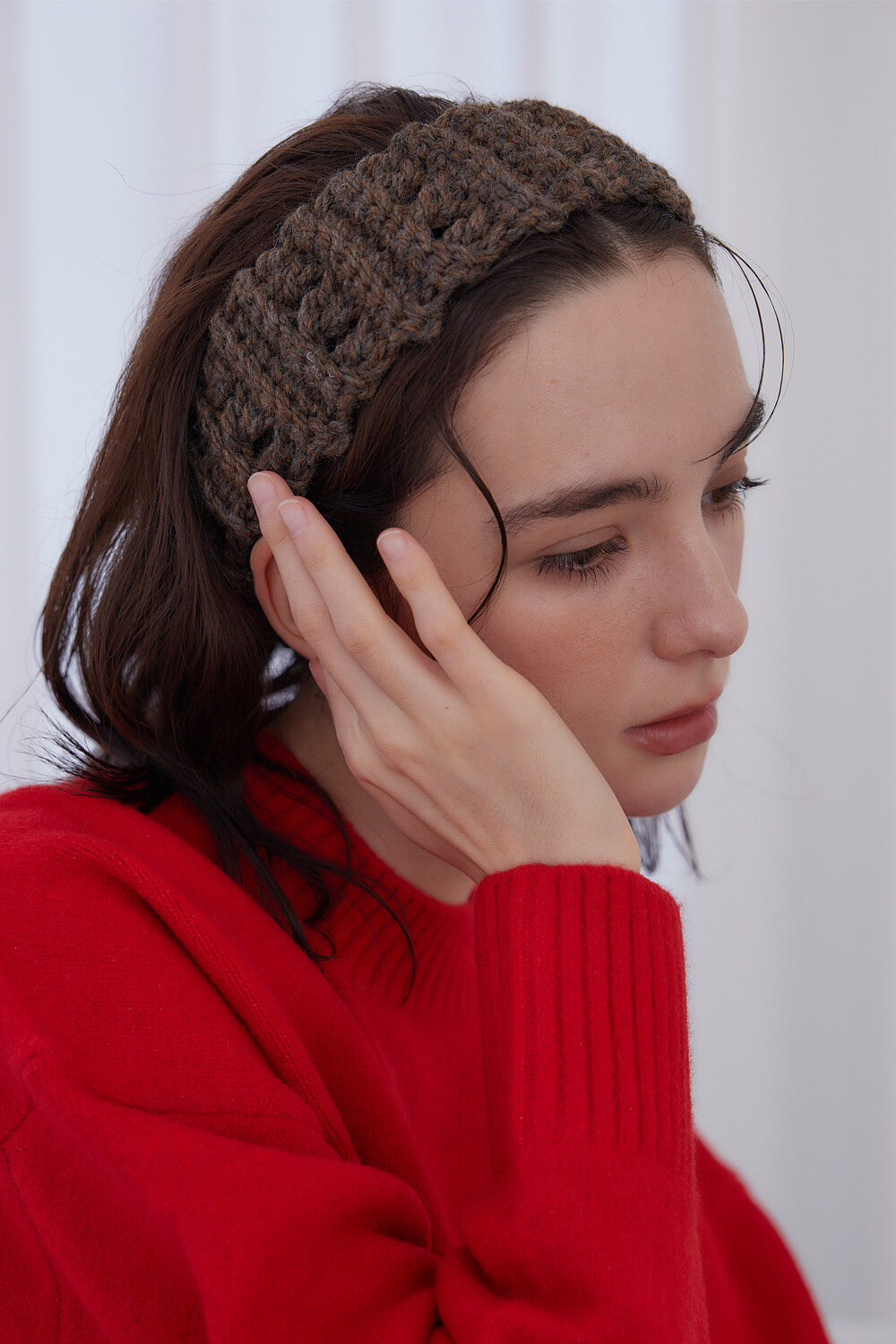 Mellow wool knit hair band (Brown)