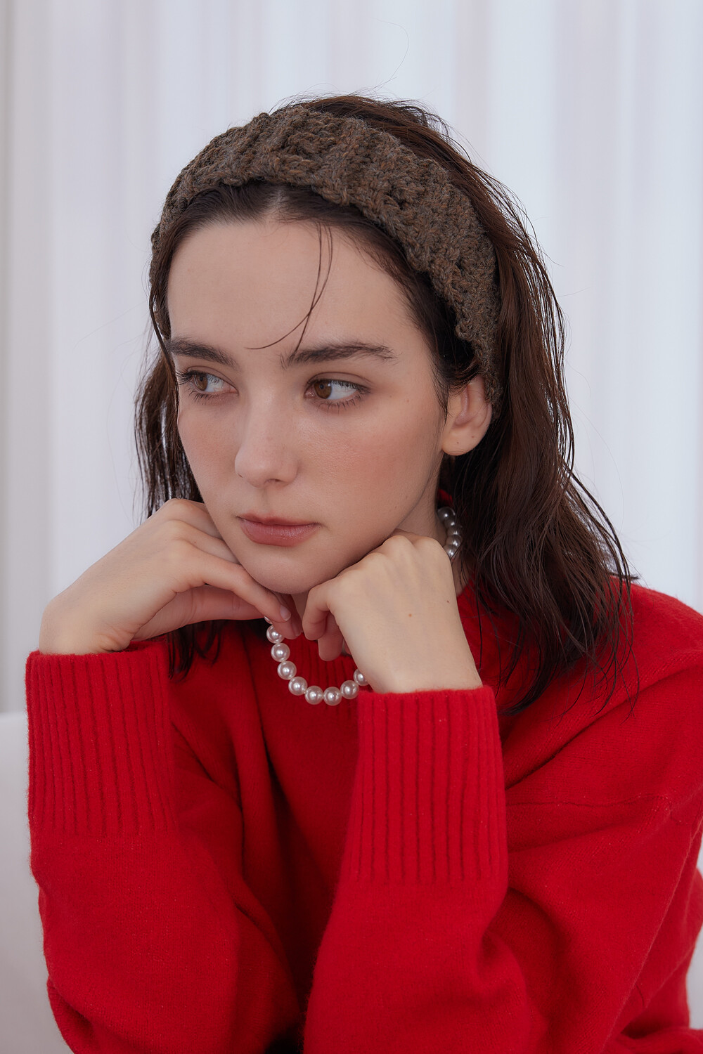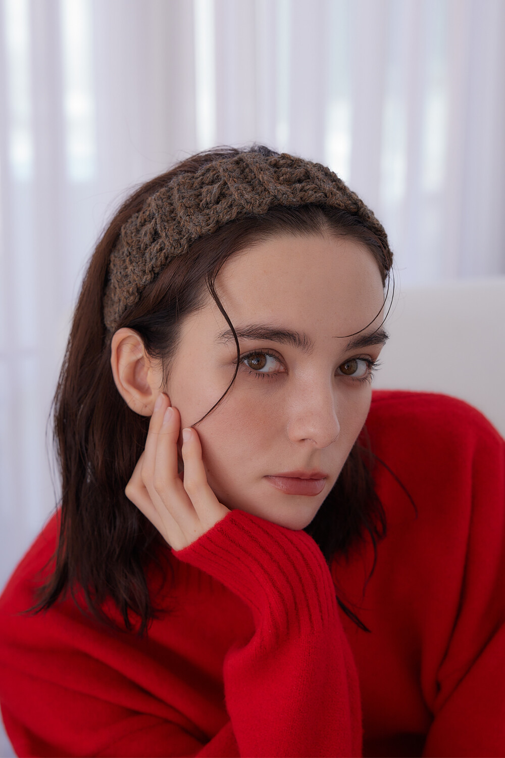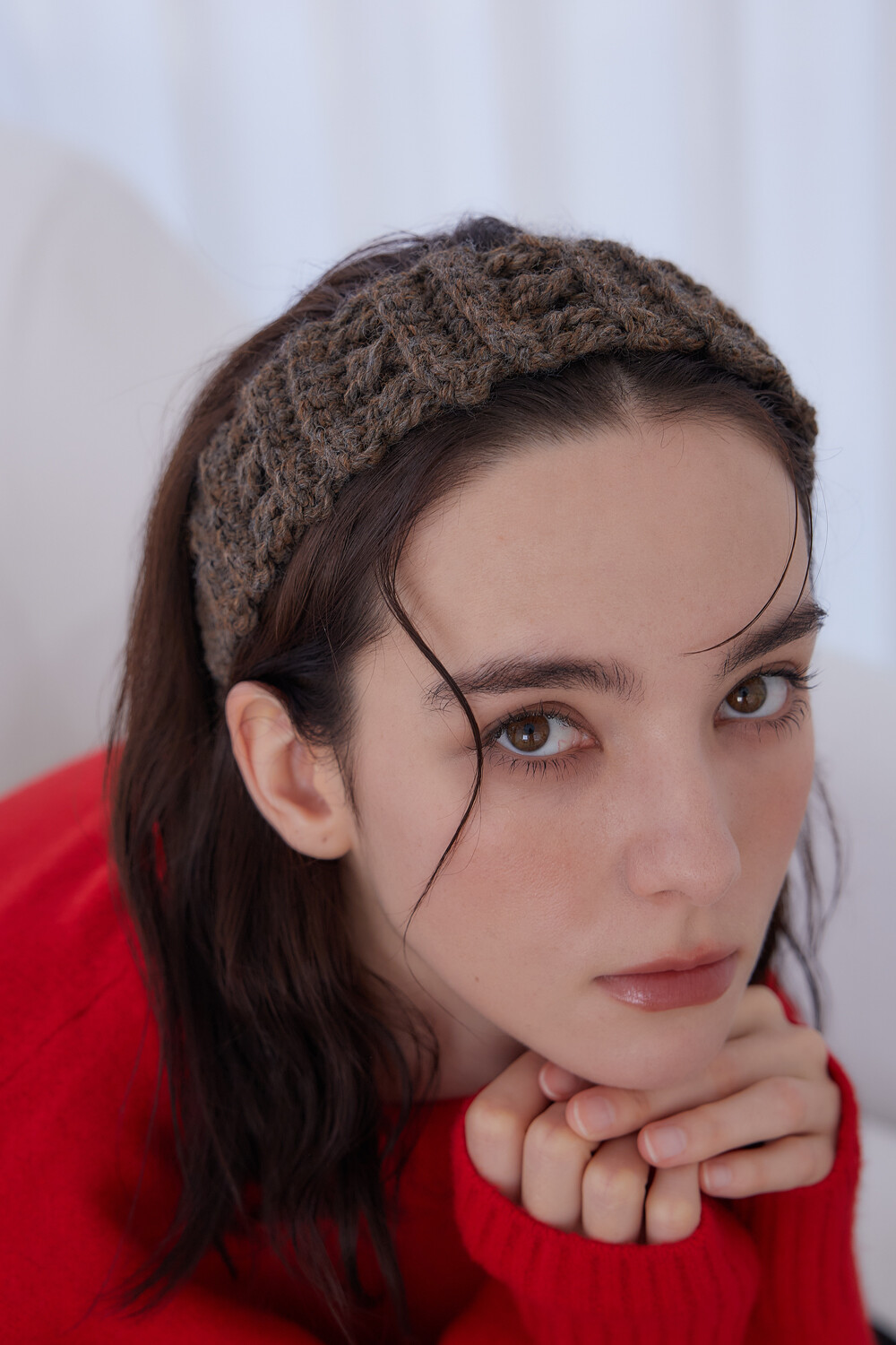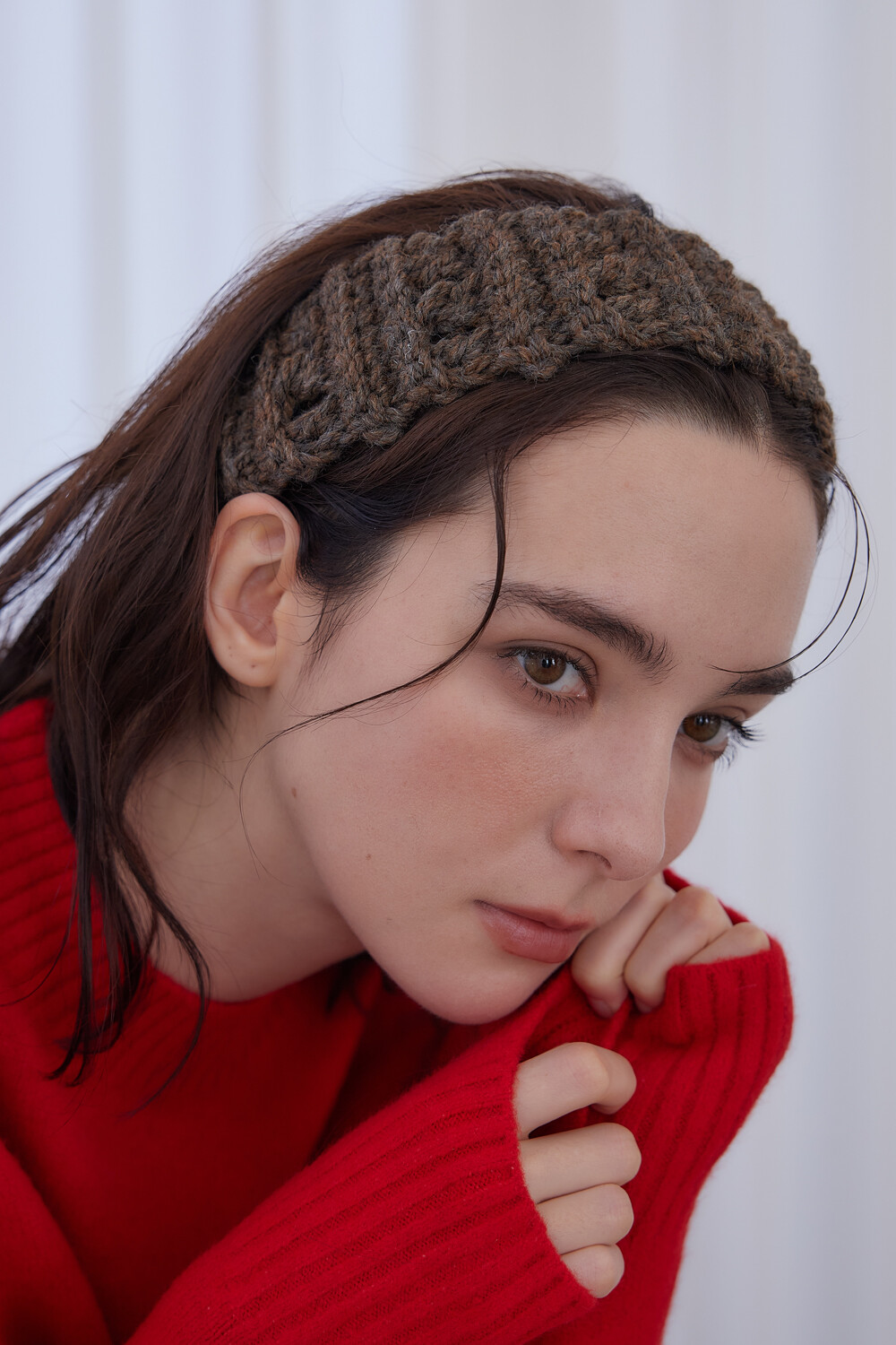 Mellow wool knit hair band (Brown)