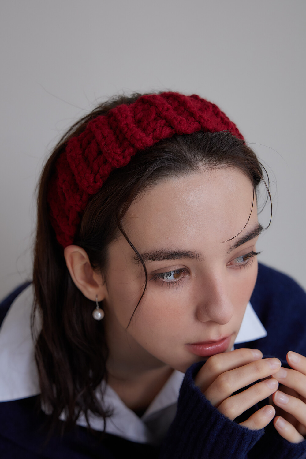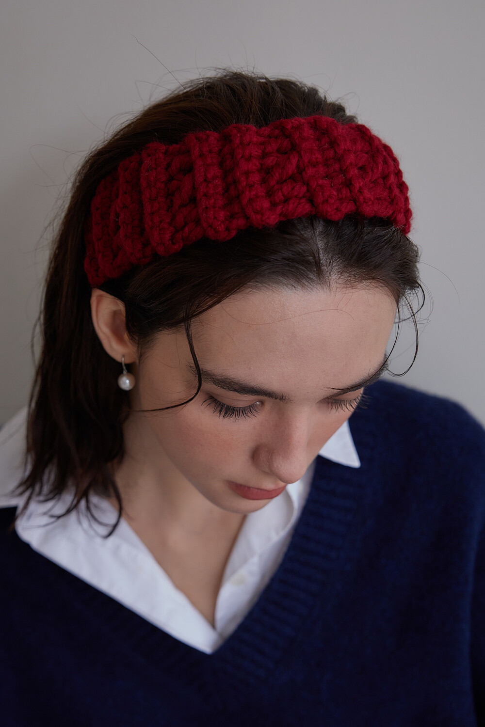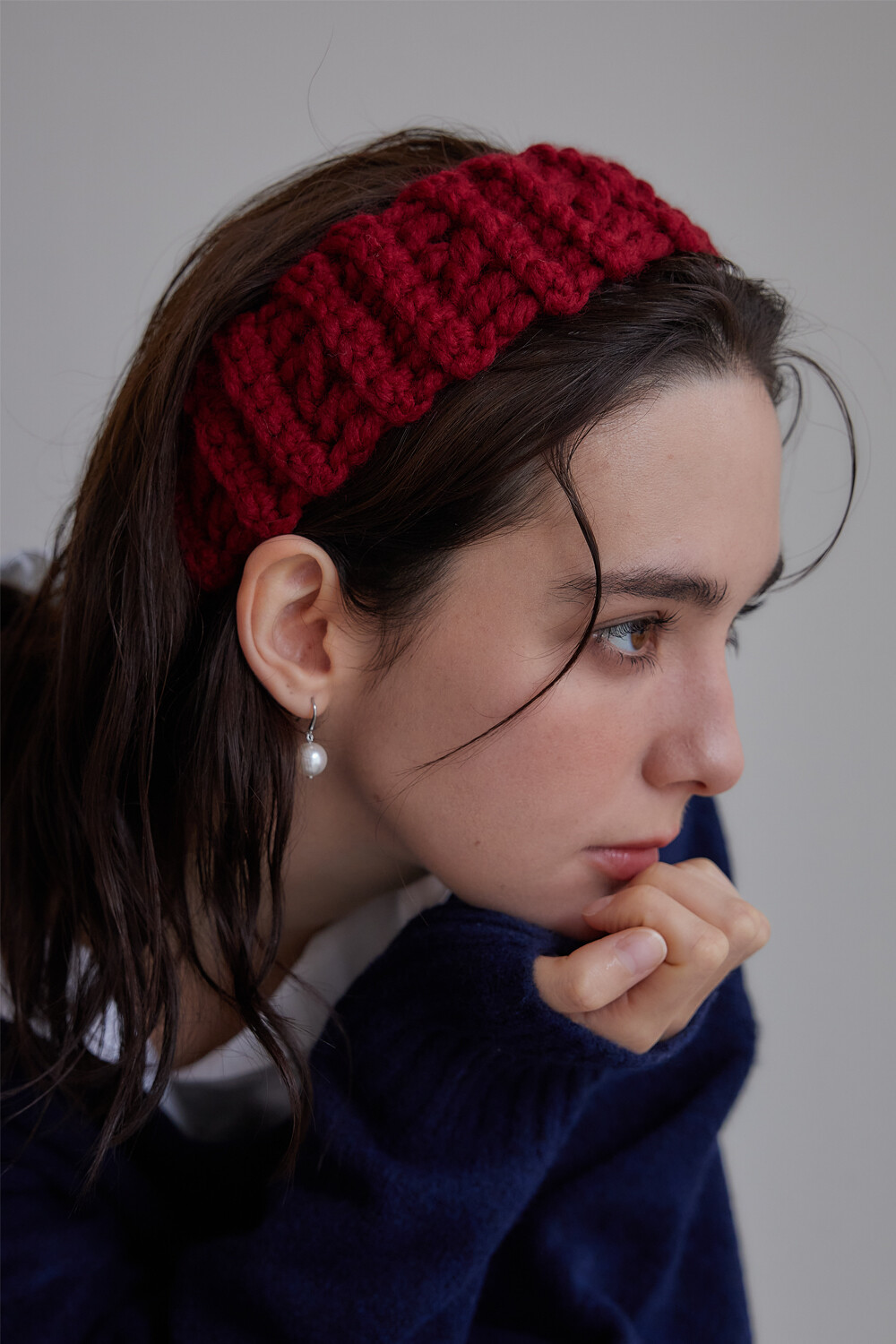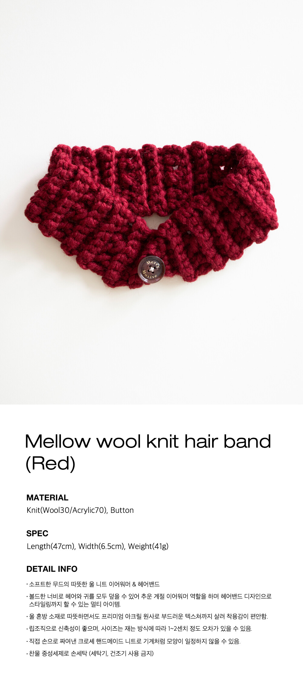 Mellow wool knit hair band (Red)