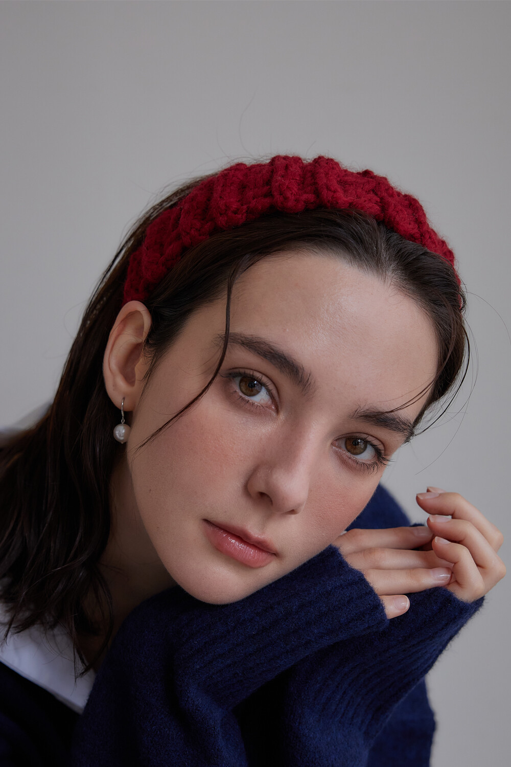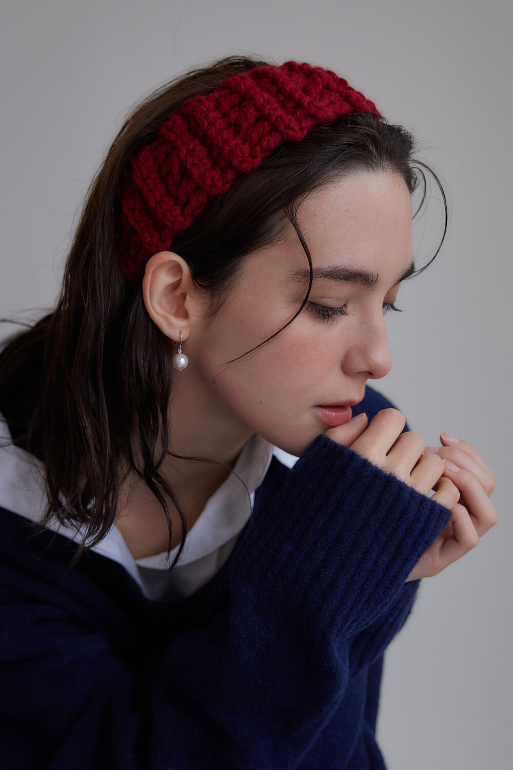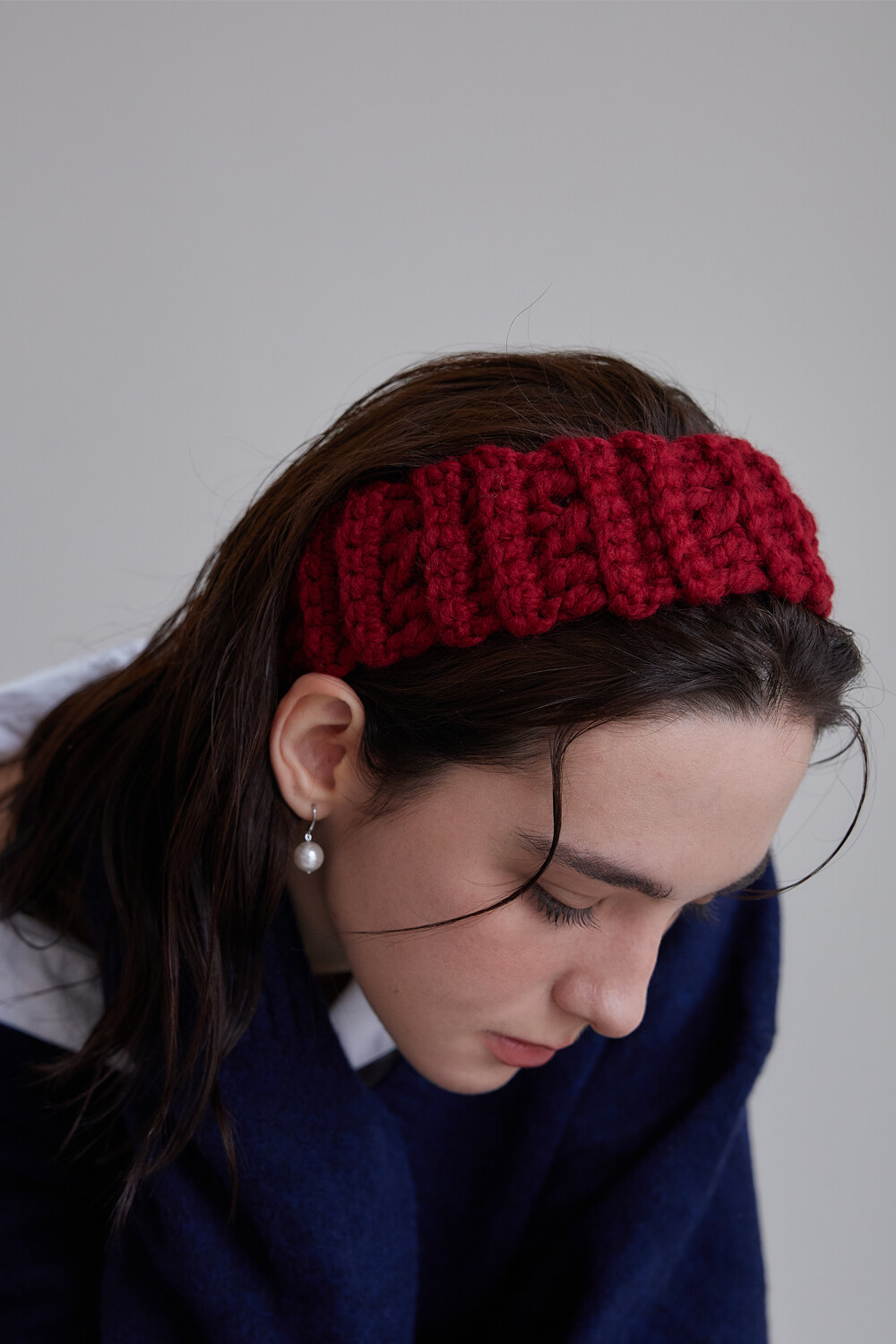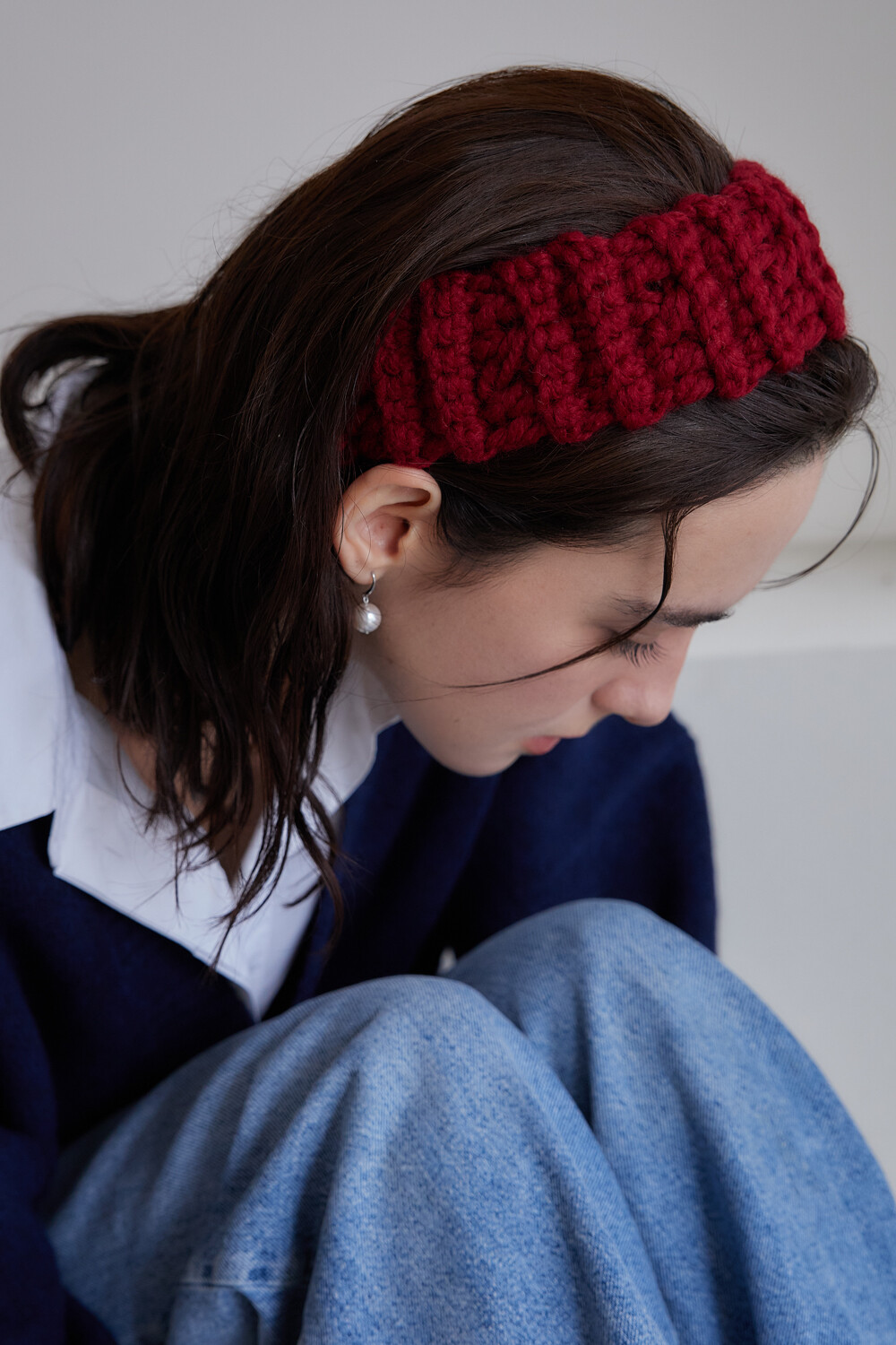 Mellow wool knit hair band (Red)