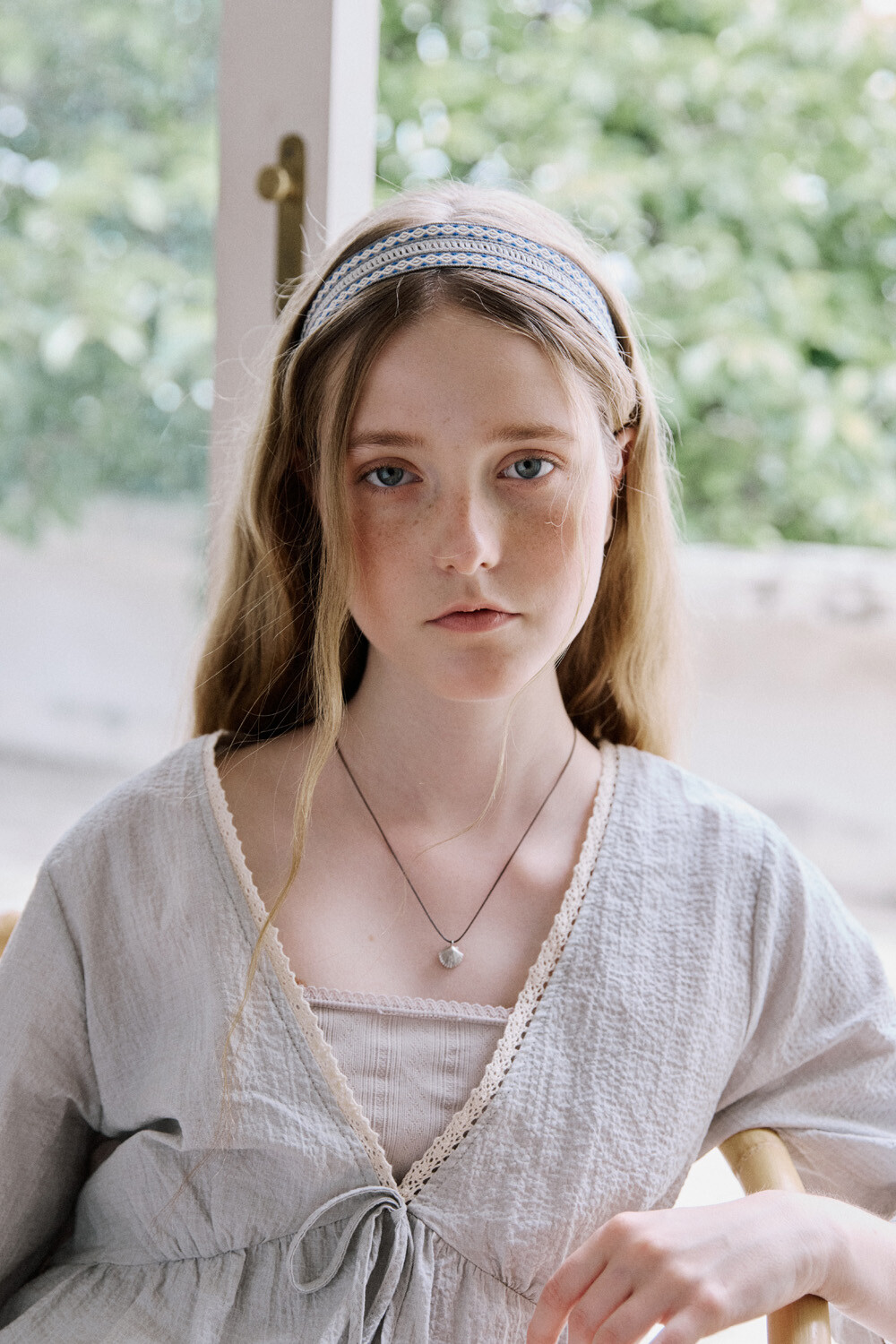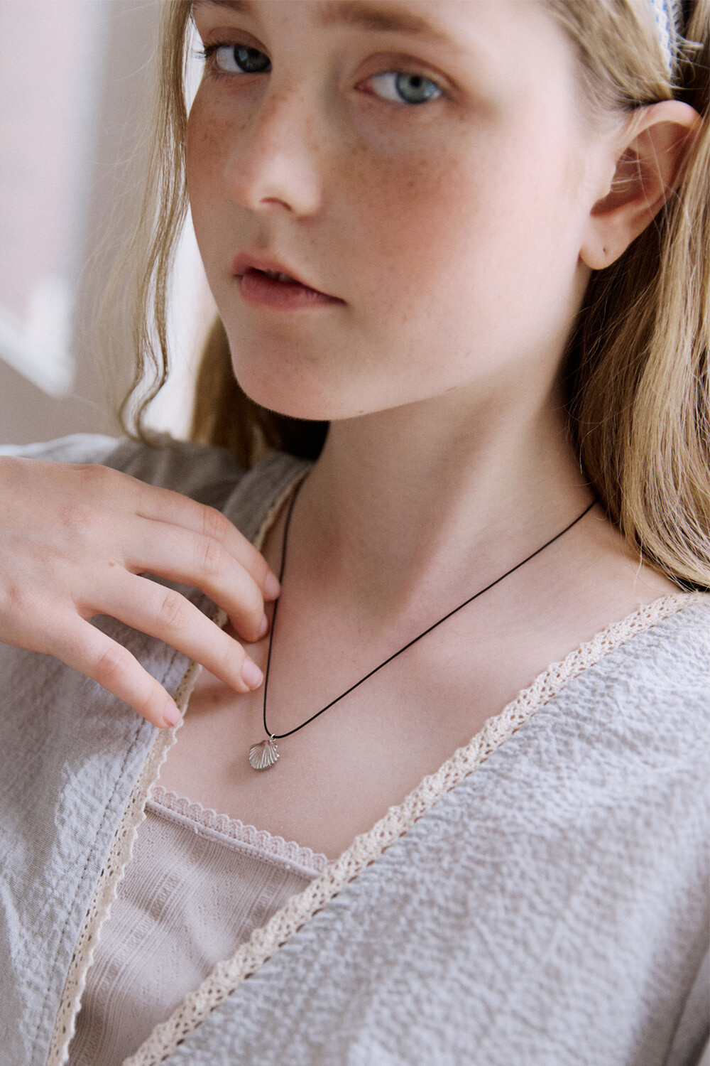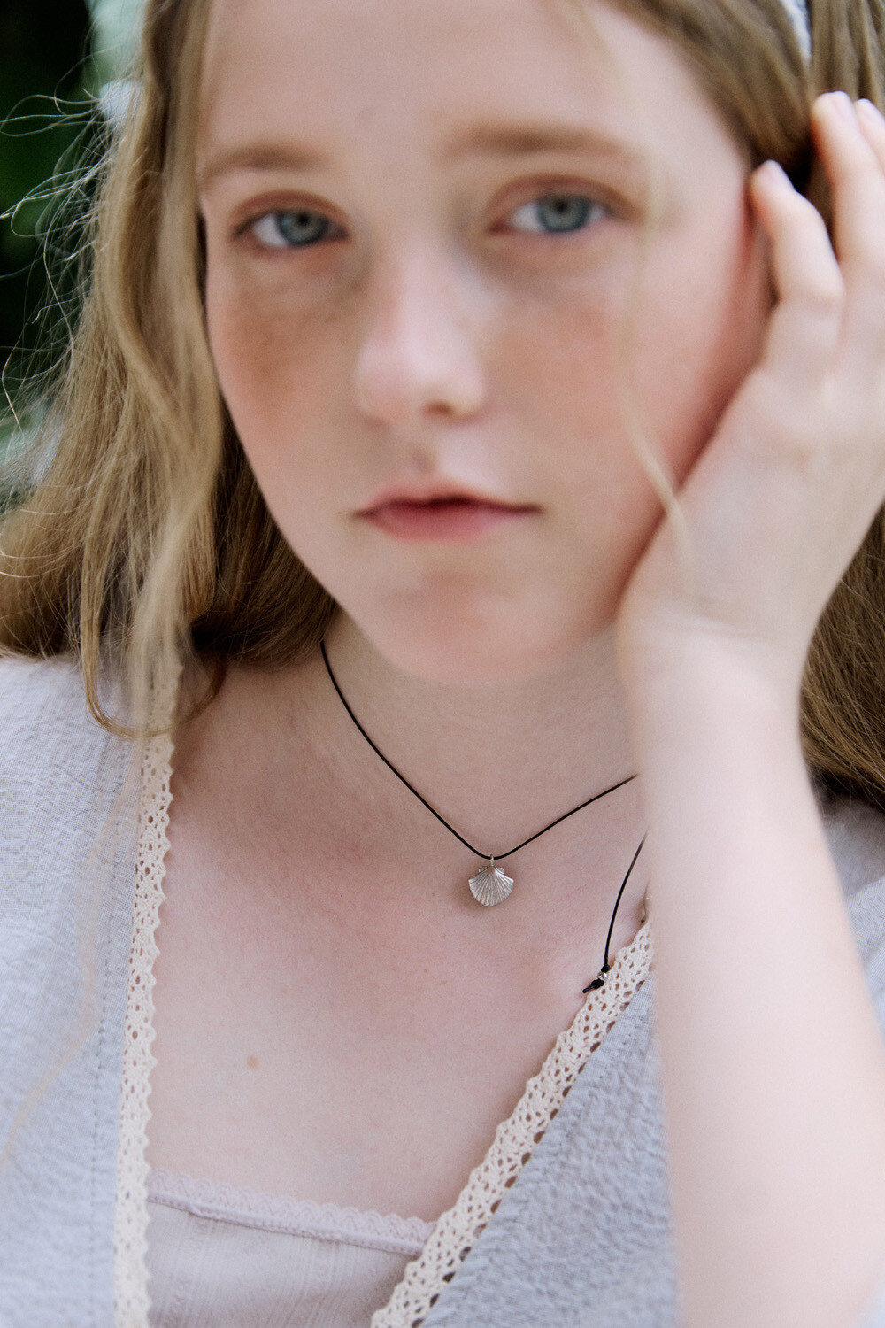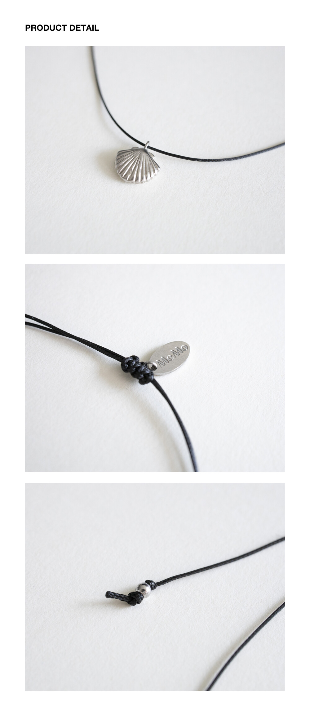 Clam with black string necklace