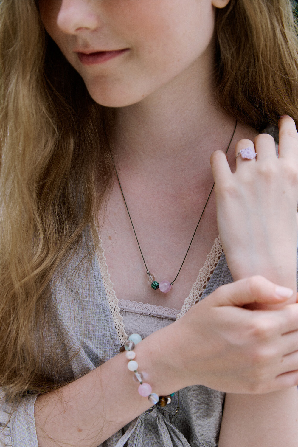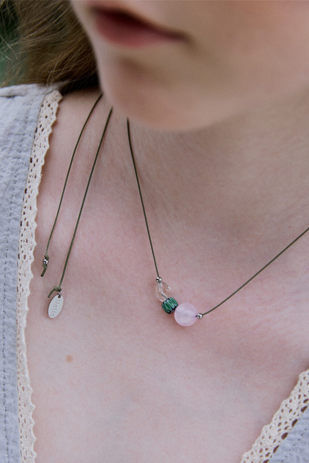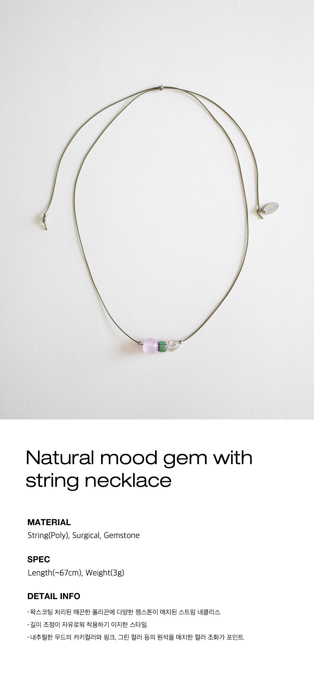 Natural mood gem with string necklace