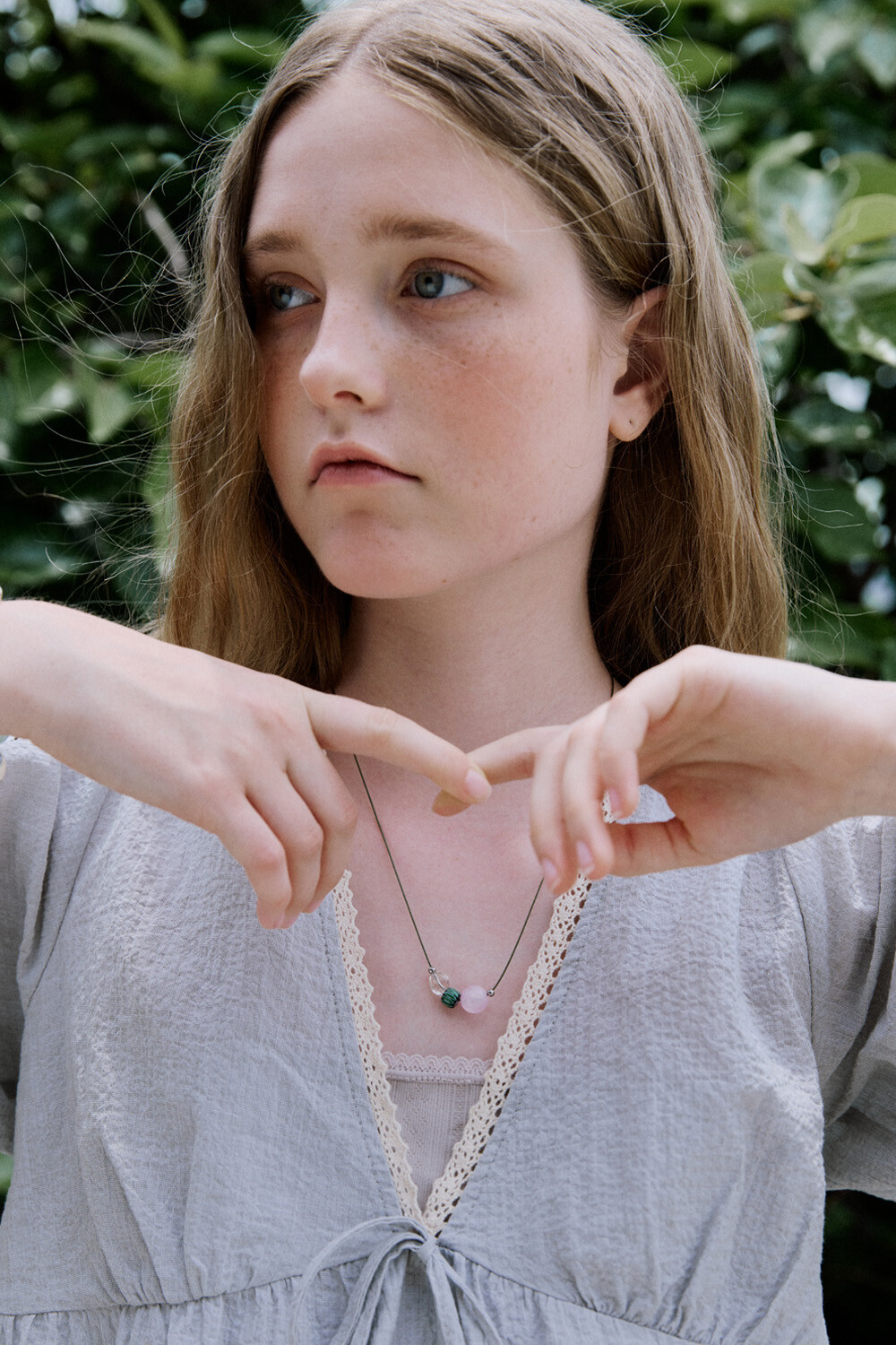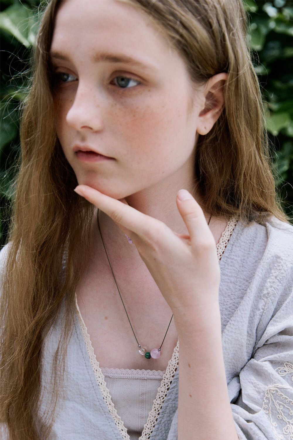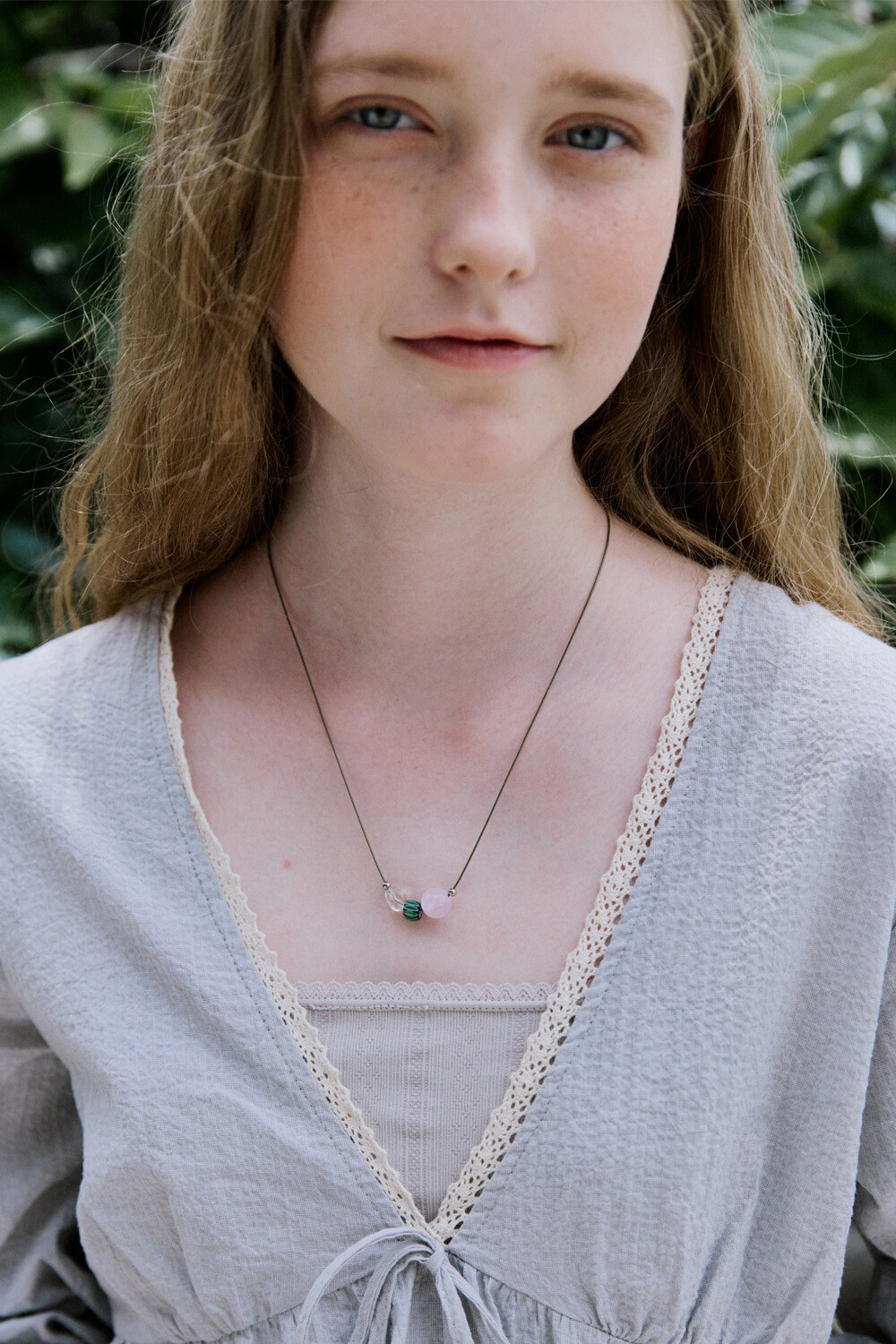 Natural mood gem with string necklace