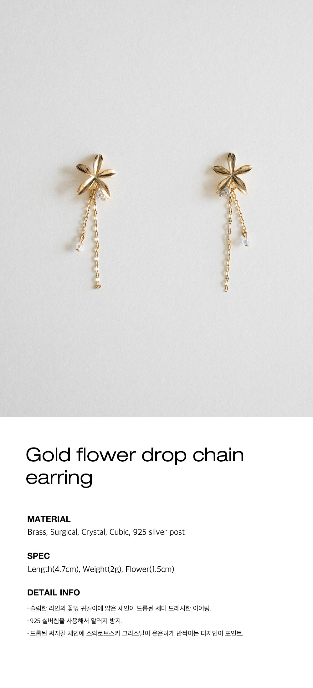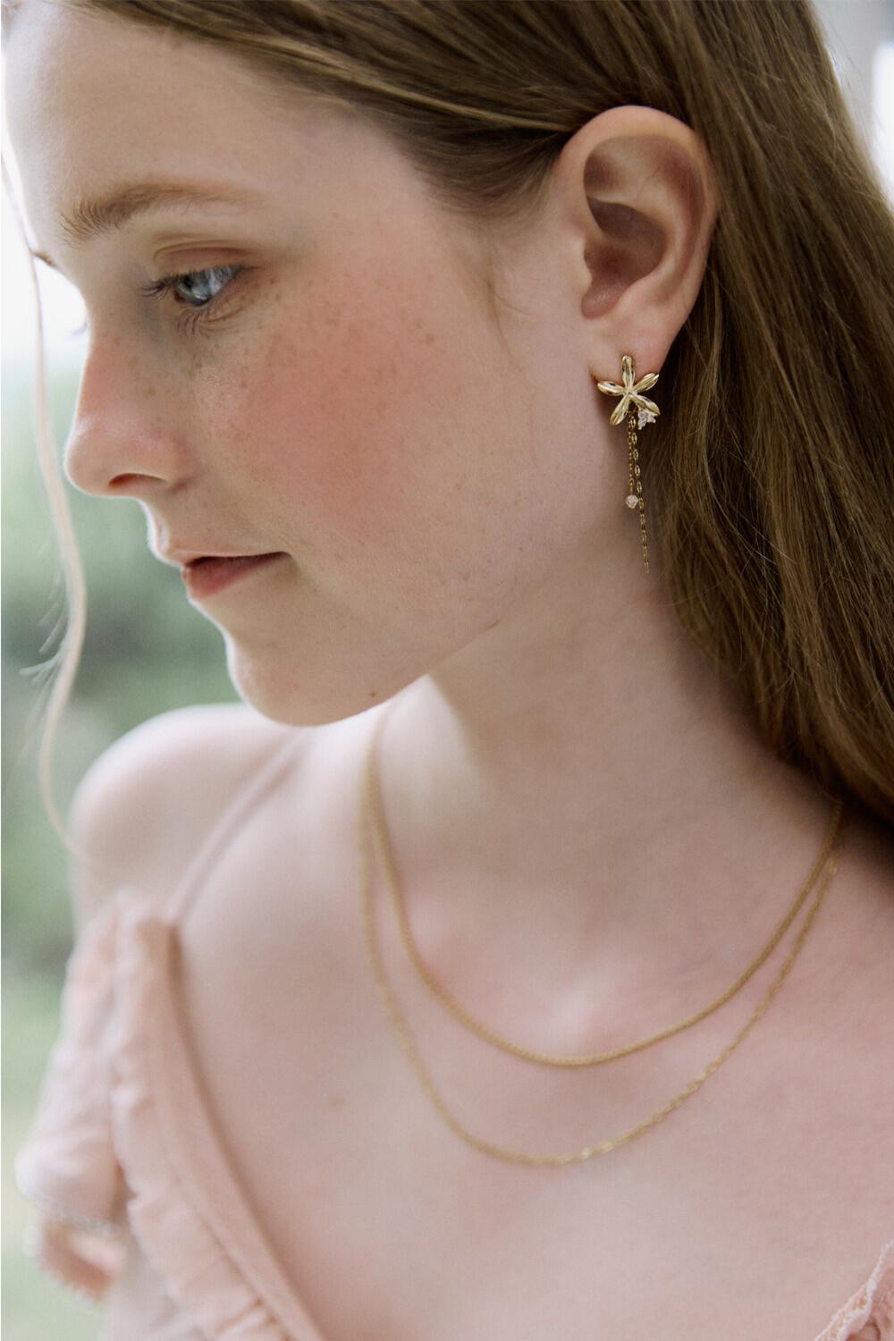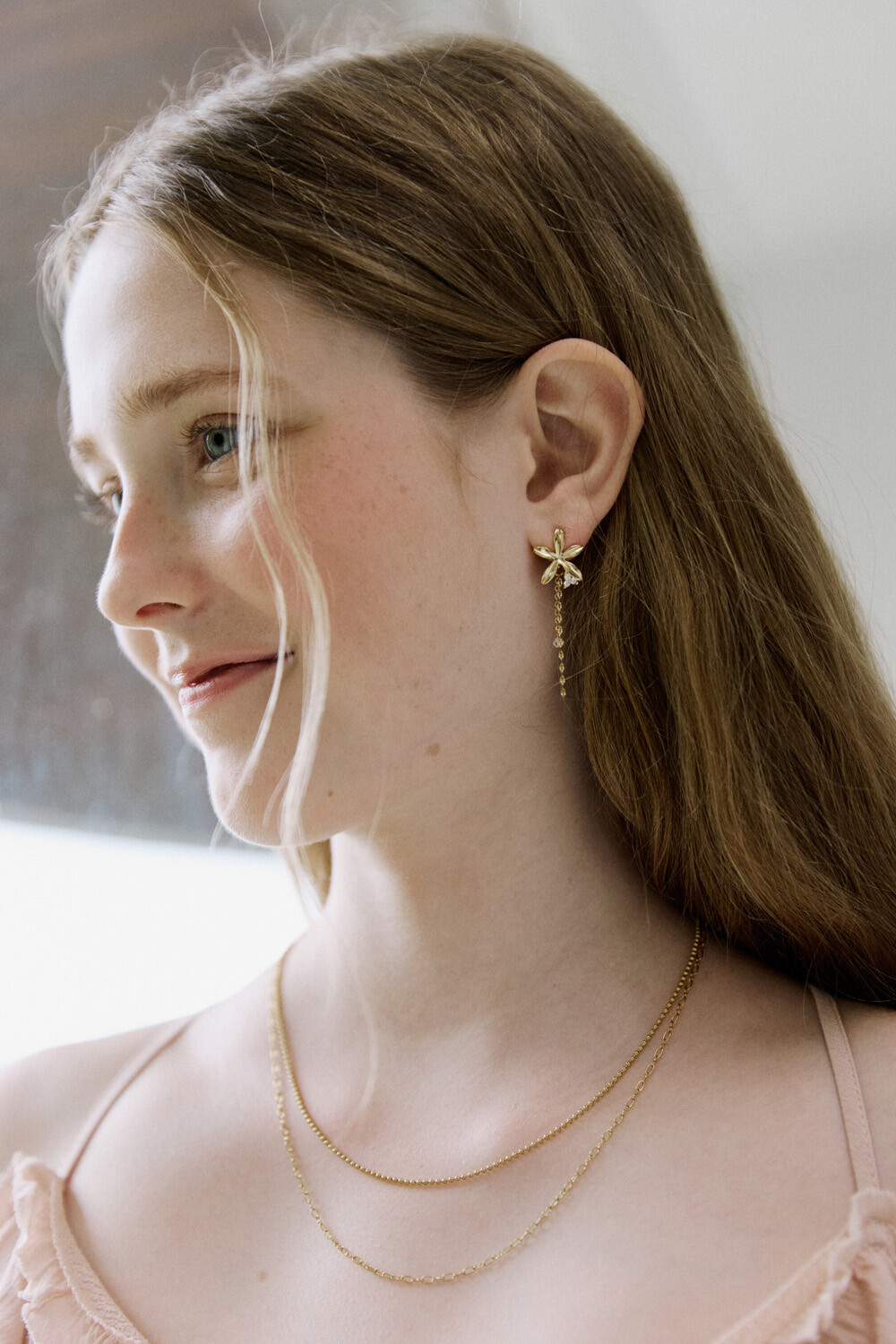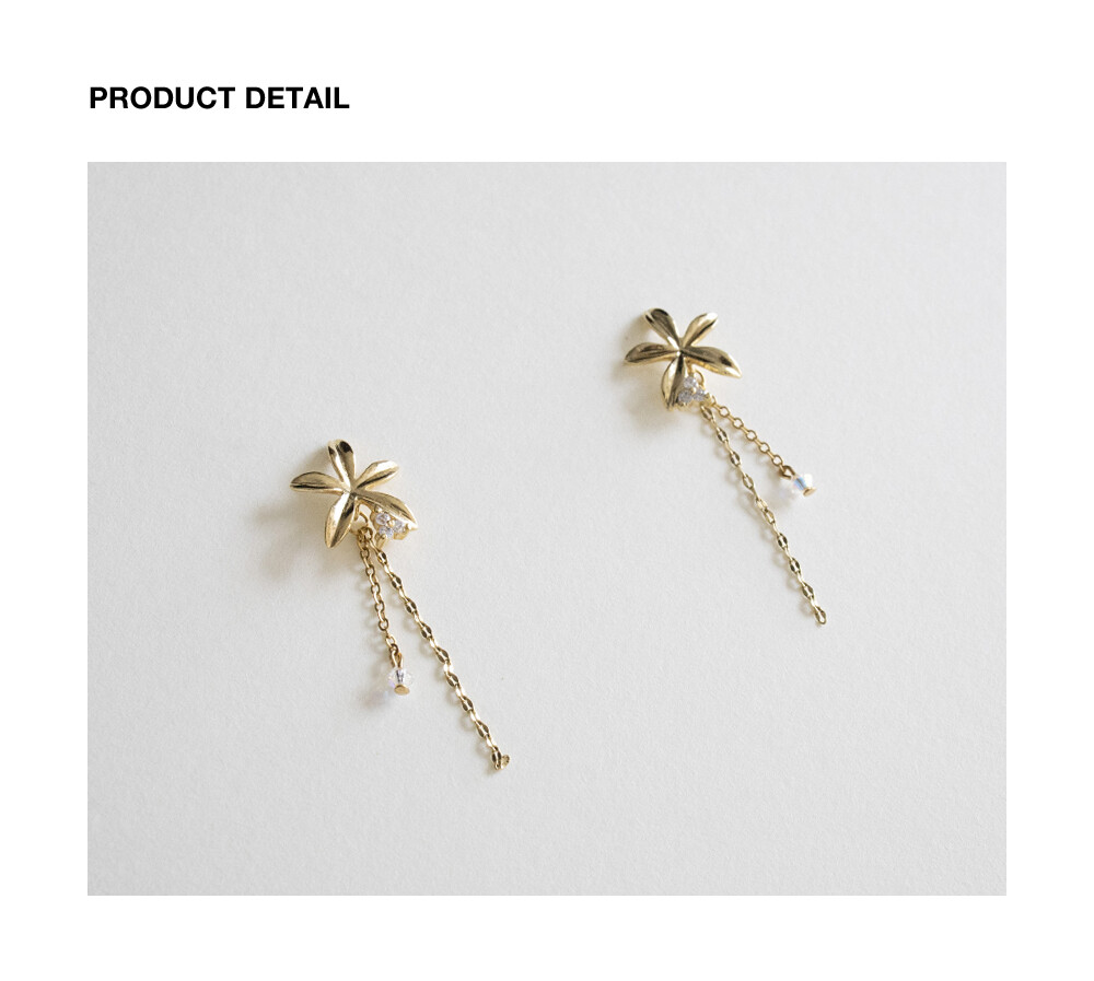 Gold flower drop chain earring