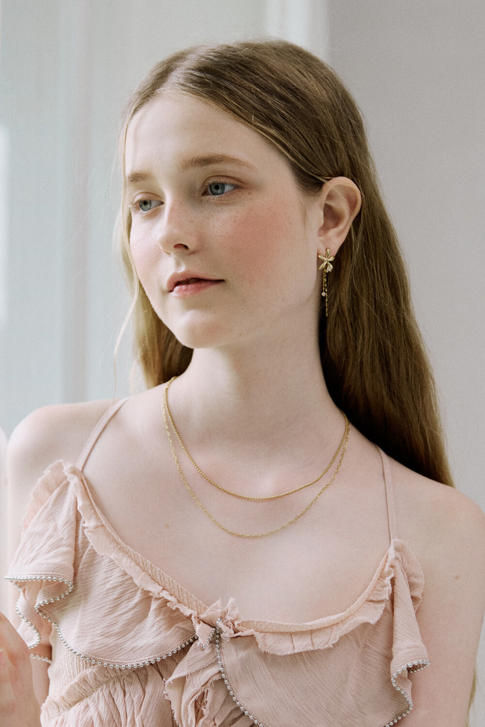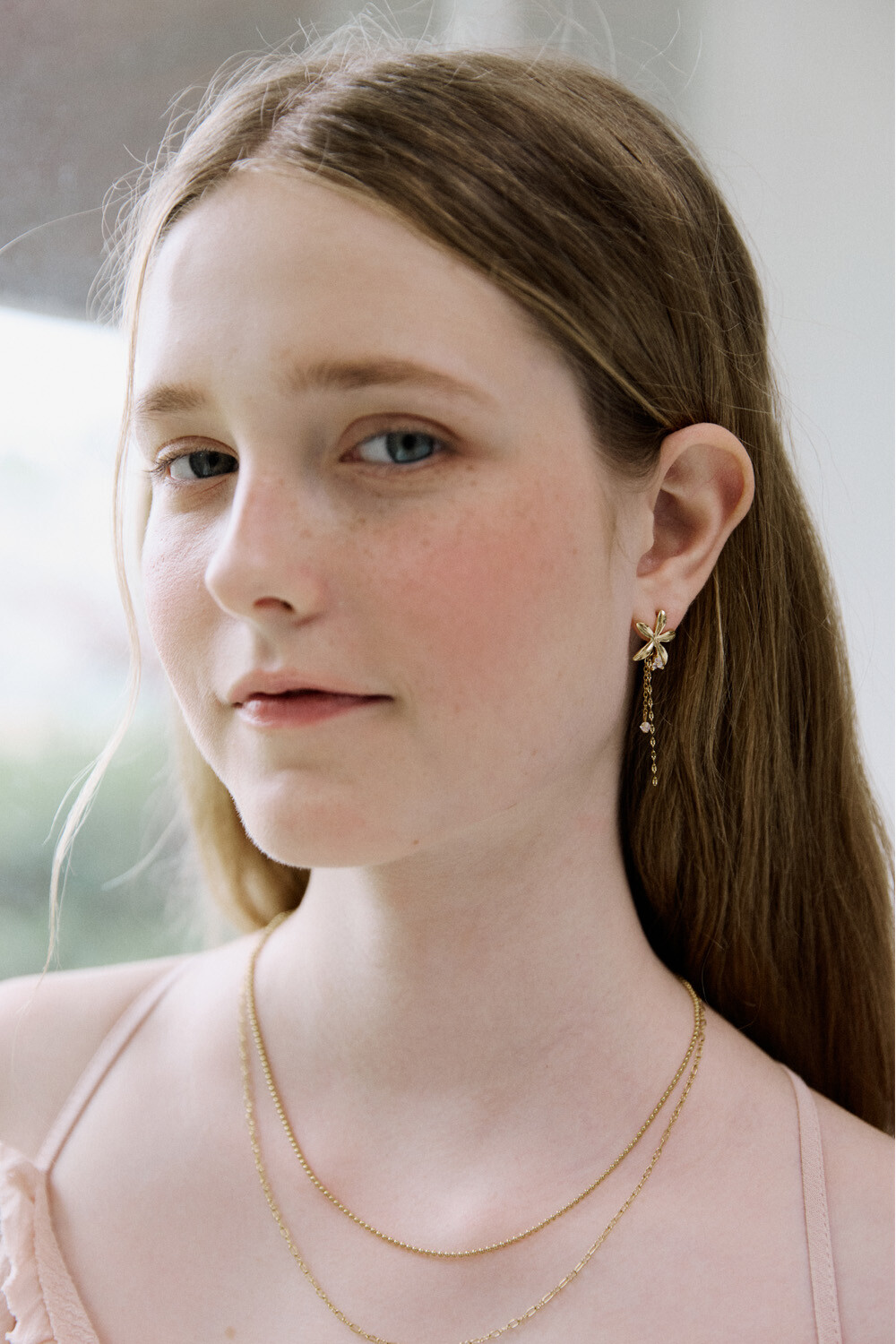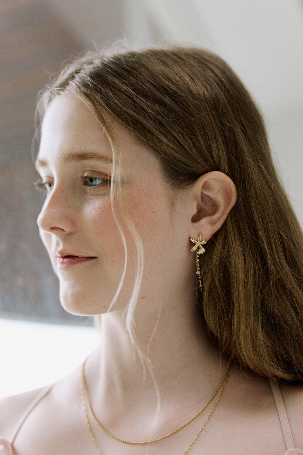 Gold flower drop chain earring