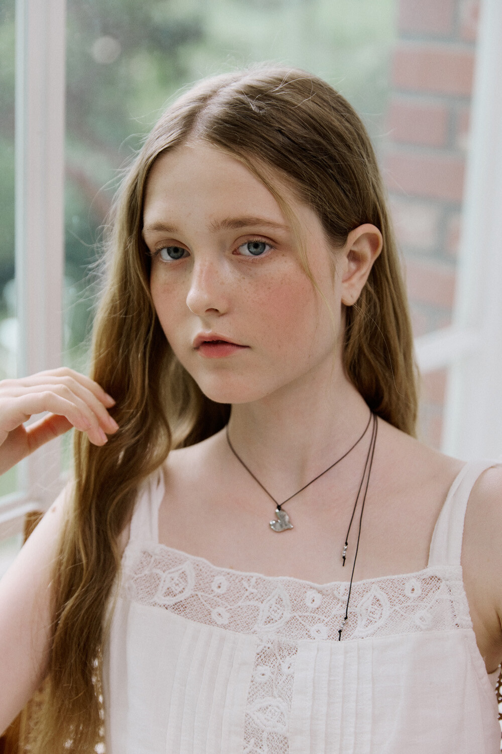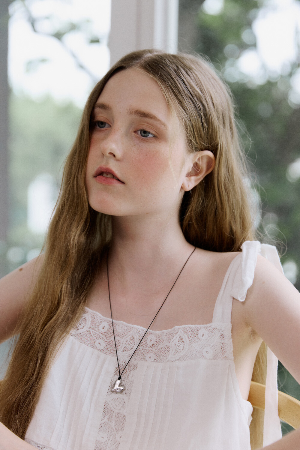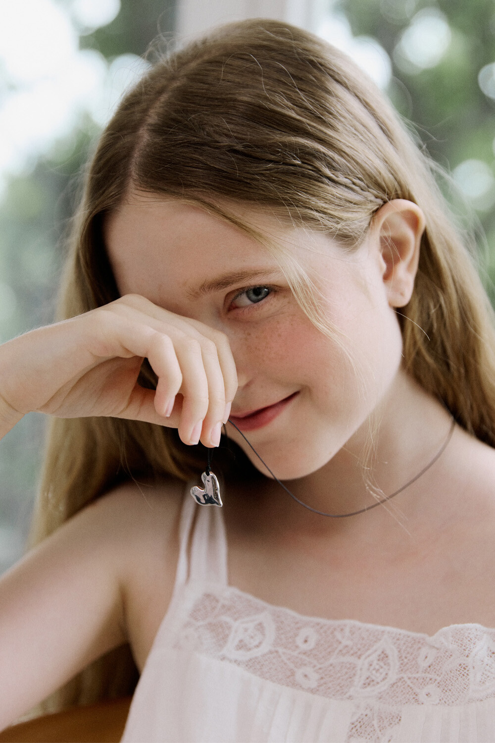 Crushed heart and black string necklace