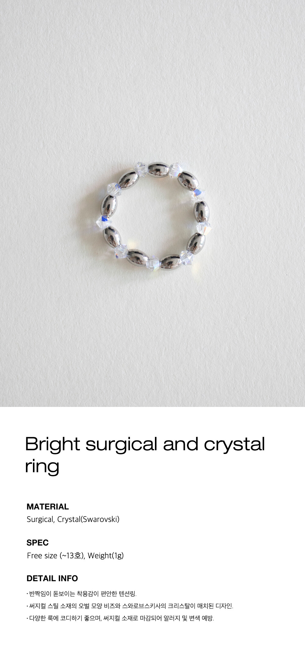 Bright surgical and crystal ring