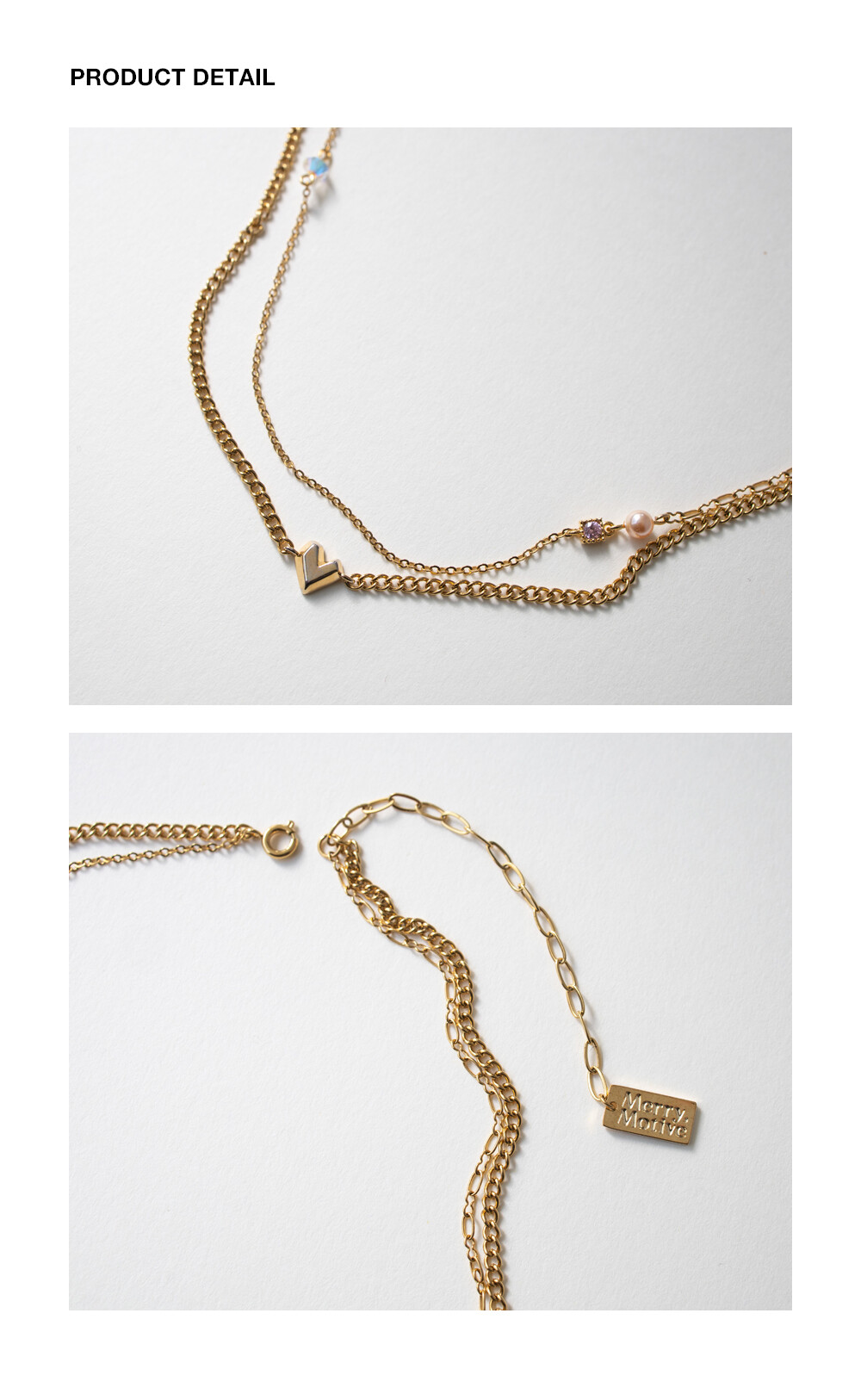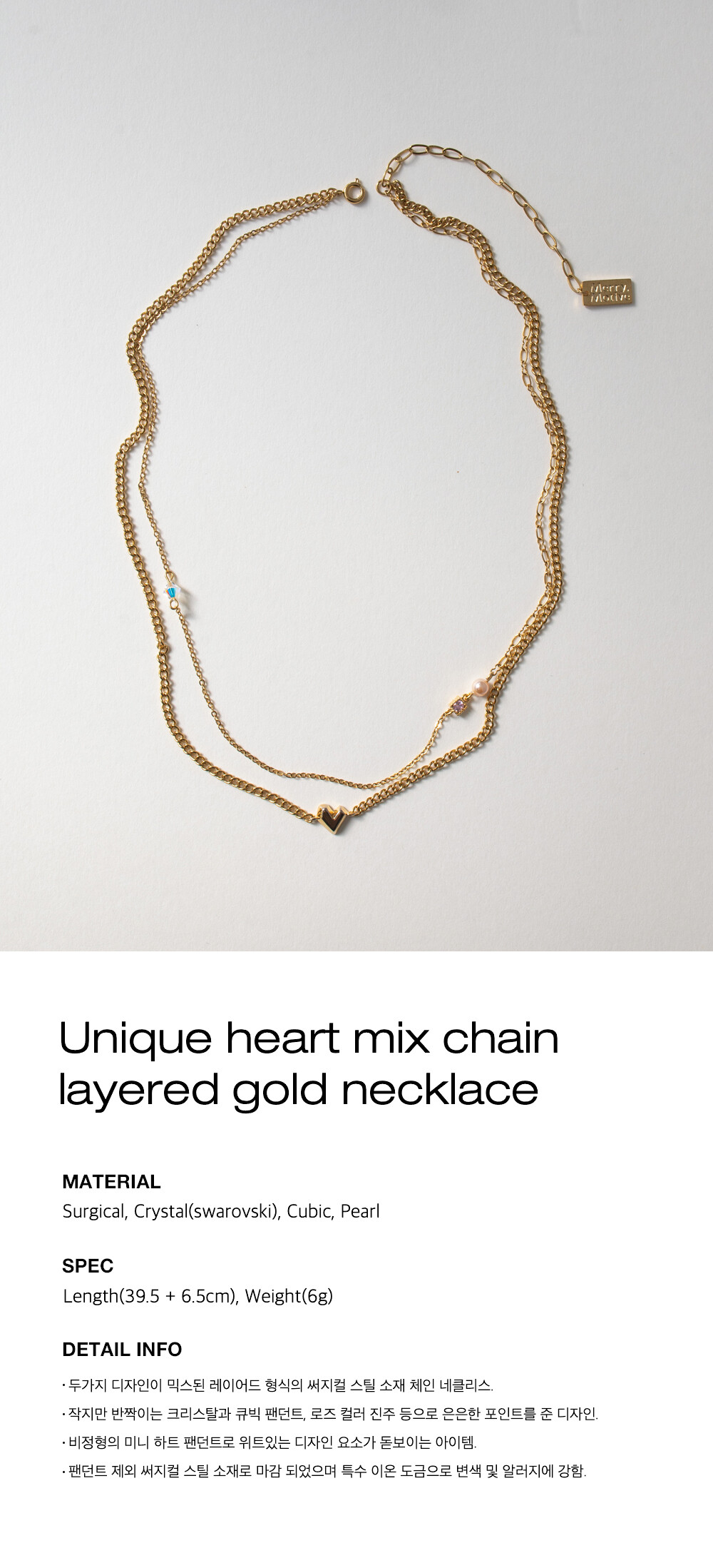 Unique heart mix chain layered gold necklace