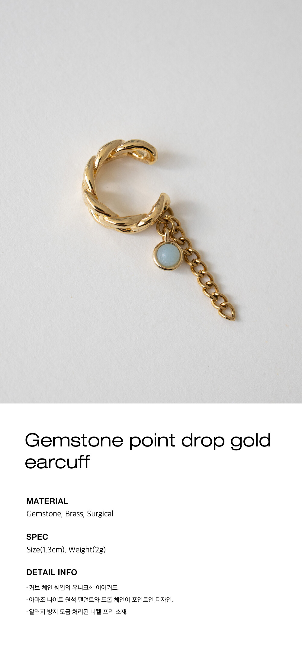 Gemstone point drop gold earcuff