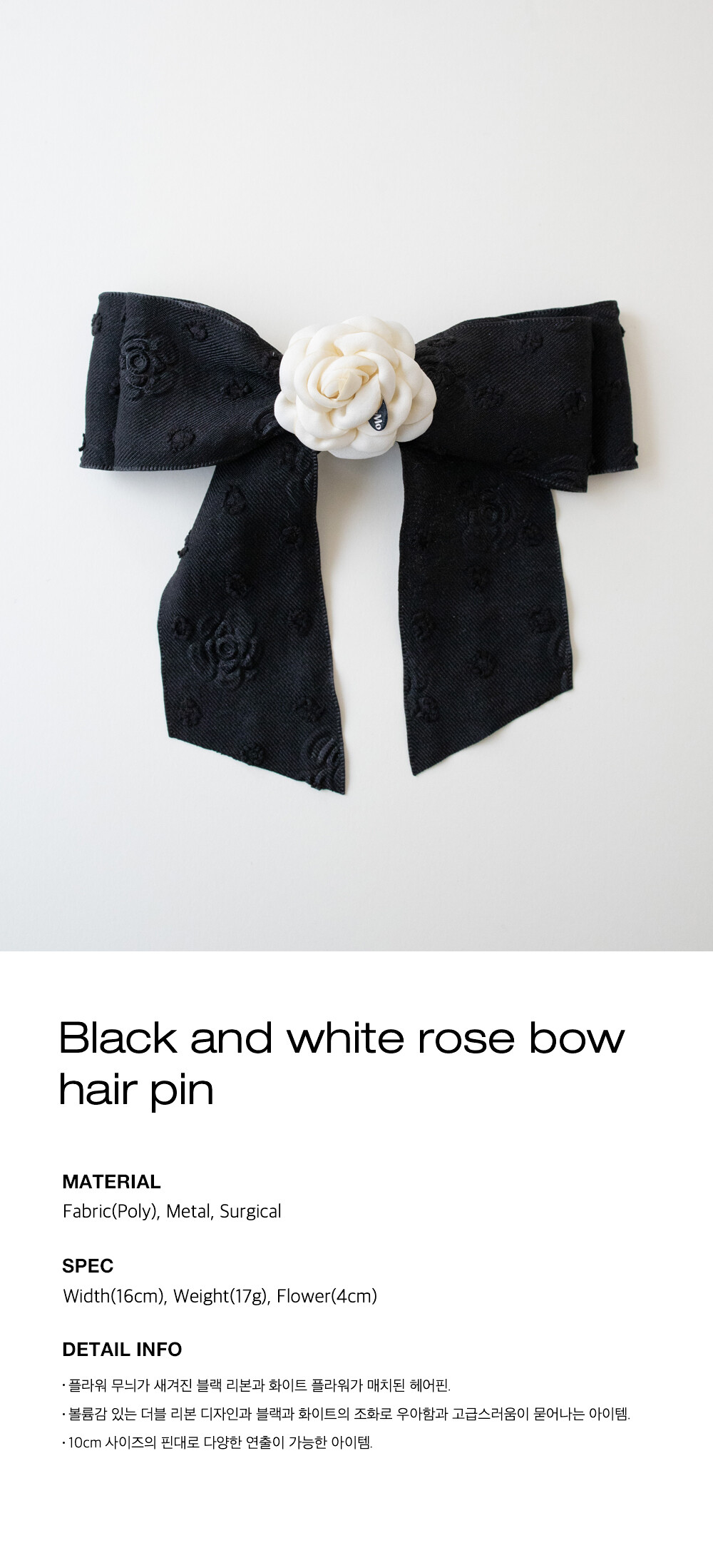 Black and white flower bow hair pin