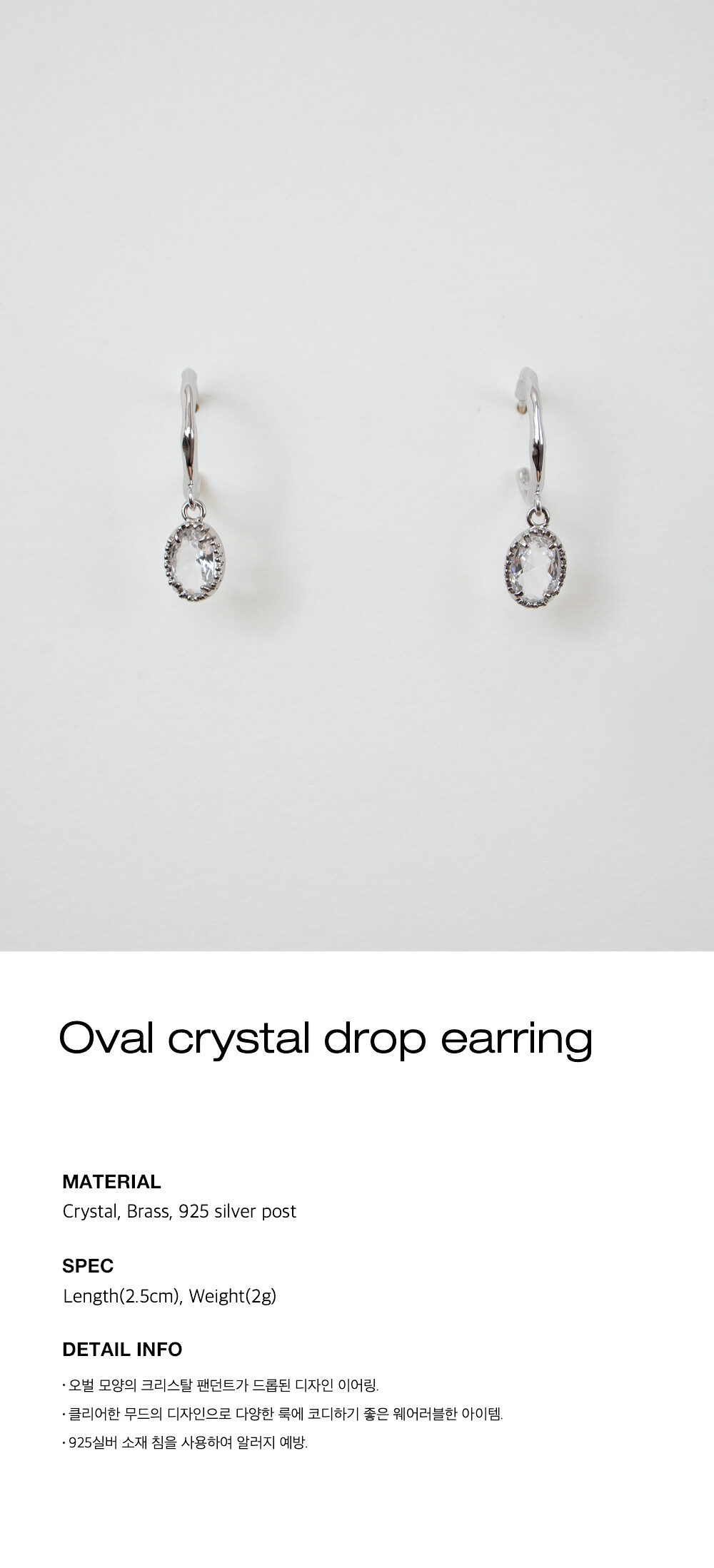 Oval crystal drop earring