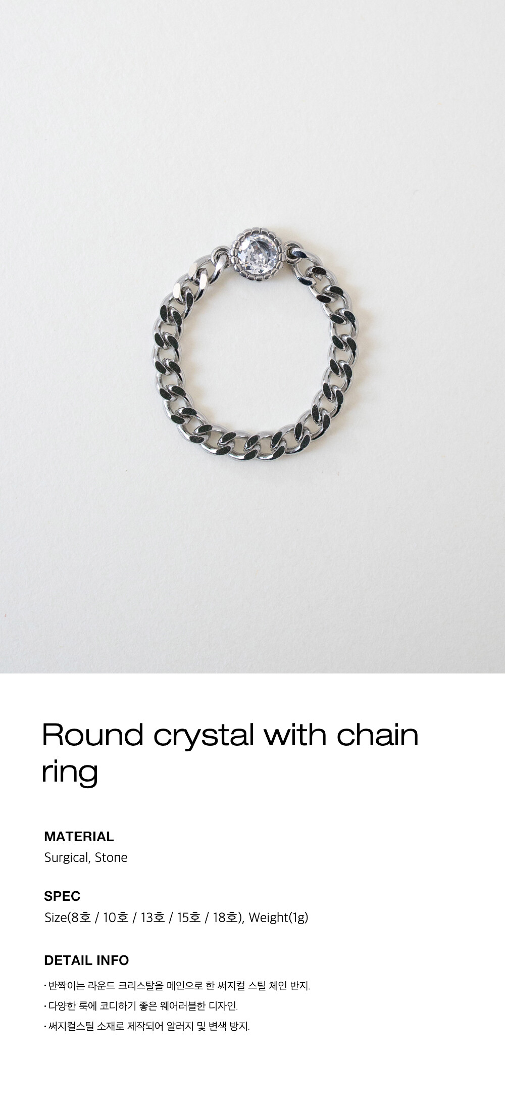 Round crystal with chain ring
