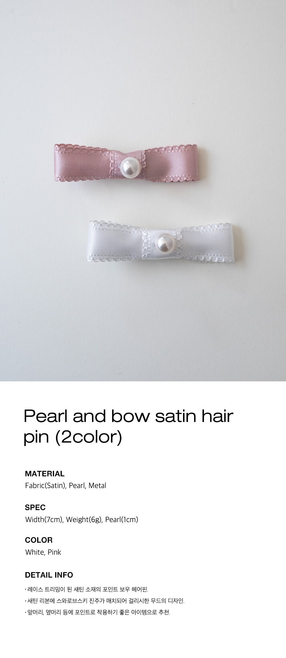 Pearl and bow satin hair pin (2color)