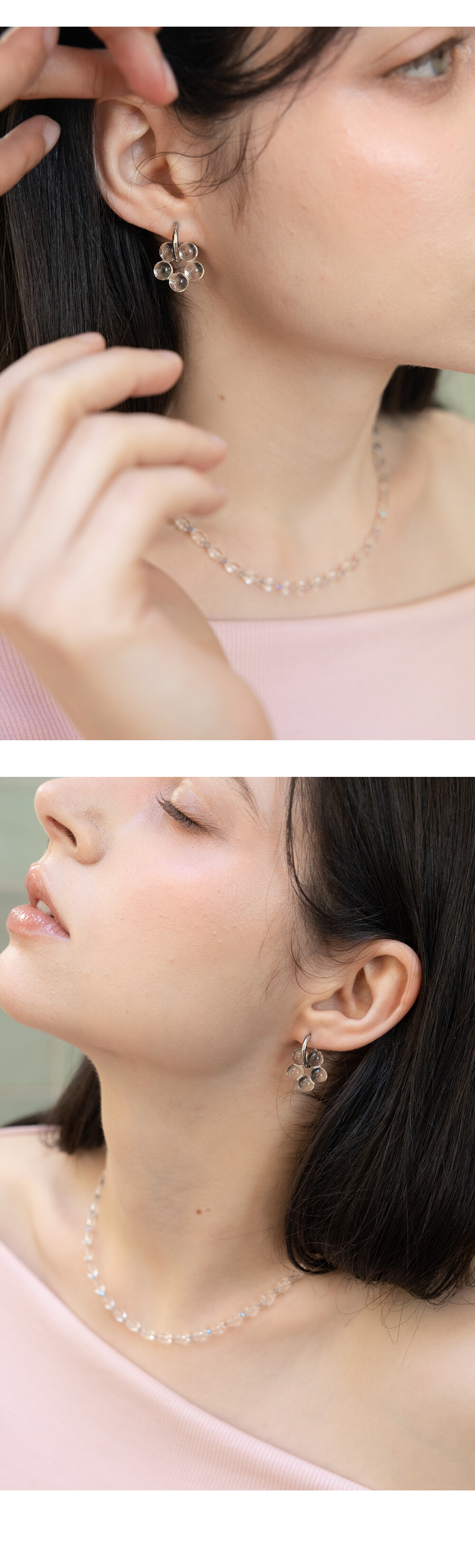 Clear flower hoop earring